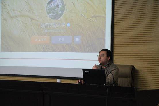 讲座开始,张老师通过解释什么是新媒体引入报告主题。他说新媒体是一个相对概念,是报刊、广播、电视等传统媒体以后发展起来的新的媒体形态。它包括网络媒体、手机媒体、数字电视等。接着他又对新媒体做了简单的分析,一组不断修改的数字成了媒体的发展。我国互联网人口6.8亿,移动互联网5亿,全国十大互联网公司占四个分别为百度、腾讯、京东、阿里。这串串数字代表了互联网的发展迅速,覆盖面广,而从小处看一下我们的闪star,不难看出,我校现有各级各类网站及应用平台300余个,开通微博、微信的校内单位和学生社团已超过两百余家,学生运用网络媒体比例已达到100%,教师达到71.13%。这些都表明,我们的生活已经离不开互联网,我们必须要对它有深刻的认识、了解,并很好的运用。