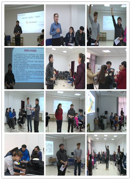 在期末考试来临之际,为加强考风、考纪,教育同学们真正做到诚信考试,2015年12月31日,我院两年制本科预科班在六附楼312教室由辅导员热依木主持召开以“诚信考试,诚实做人”为主题的诚信教育主题班会。