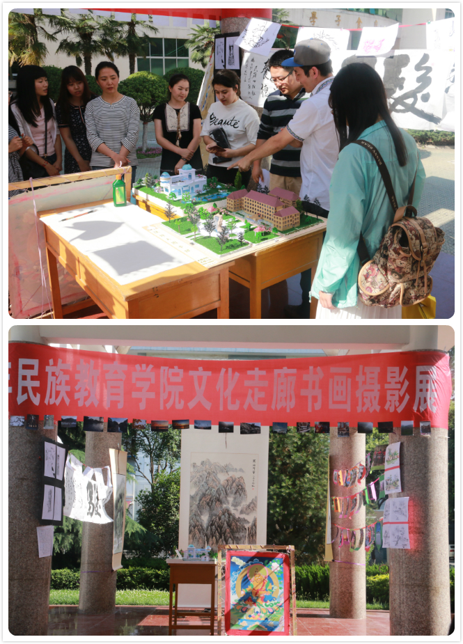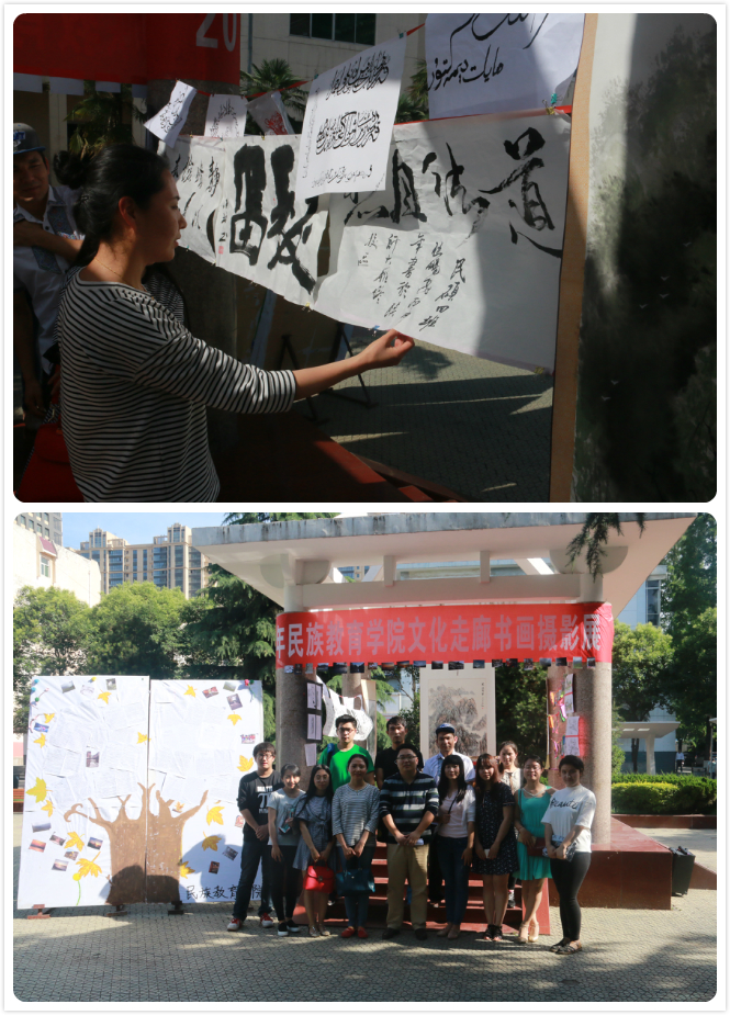 为进一步展示我院少数民族学子积极向上的精神面貌,丰富同学们的课外生活,也为了给爱好书画、摄影和设计的同学提供一次展示自己才艺的机会,我院2016年民族团结活动月系列活动之一“民族文化走廊”书画、摄影展及学习成果展于6月3日15:30在喷泉广场举办。学院副书记窦文阳、团总支书记萨仁娜,以及兼职辅导员参加了此次活动。