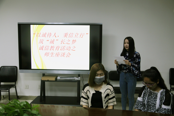 此次诚信教育活动月的系列活动分为“至诚则成,立信于行”主题班会、“以诚待人,秉信立行”辩论赛、 “筑诚长之梦”师生座谈会、“诚信为本,回归于行”征文、“诚信在我心”公益短片创作及参加我校组织开展的在线诚信知识竞赛等六大活动。其中,“至诚则成,立信于行”主题班会2次;“以诚待人,秉信立行”辩论活动1场;“筑诚长之梦”师生座谈会1场、“诚信为本,回归于行”征文收集30多篇,校推送优秀征文5篇;“诚信在我心”公益短片创作2片;在我校2017年诚信教育系列活动中,我院预科生热萨莱提·玉苏普通过我校学生资助管理中心微信平台线上答题,在本届诚信知识竞赛中荣获二等奖。