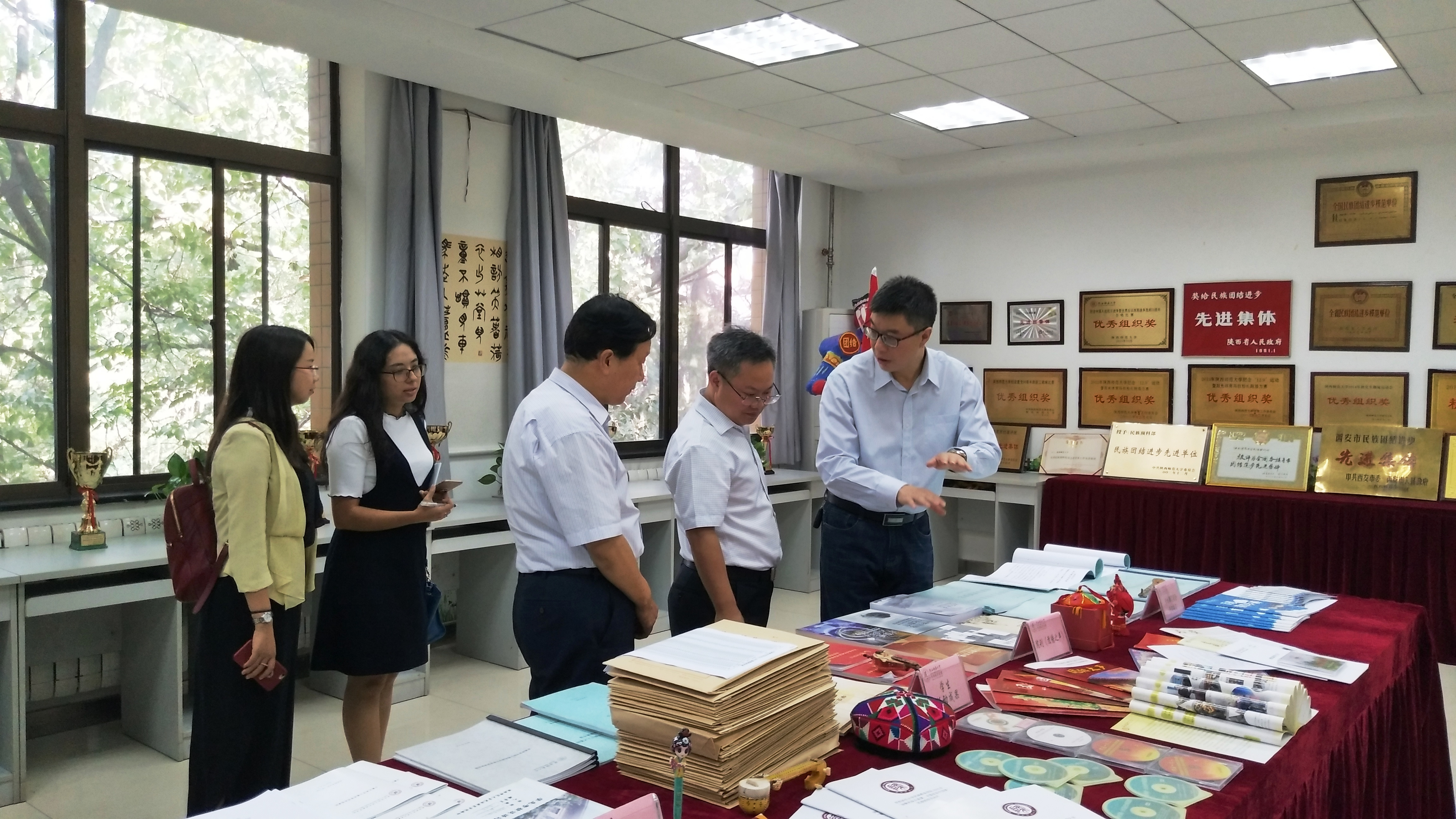 冯建新院长首先代表学院对张世保处长一行的到访表示欢迎,并带领考察组分别参观了我院文化墙和民族教育成果陈列室,重点介绍了学院历史、办学思想、学生类型、预科培养方案等相关内容。