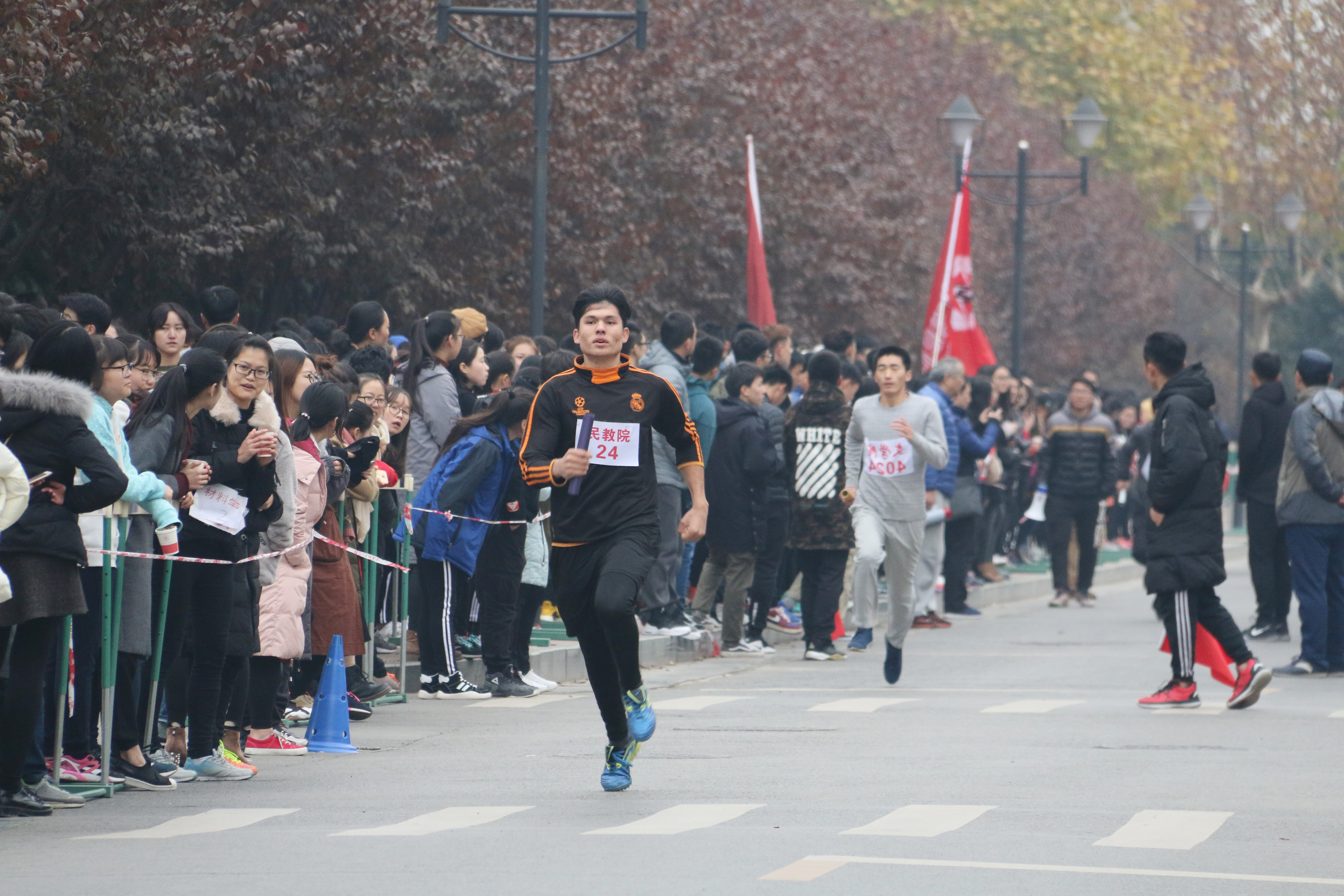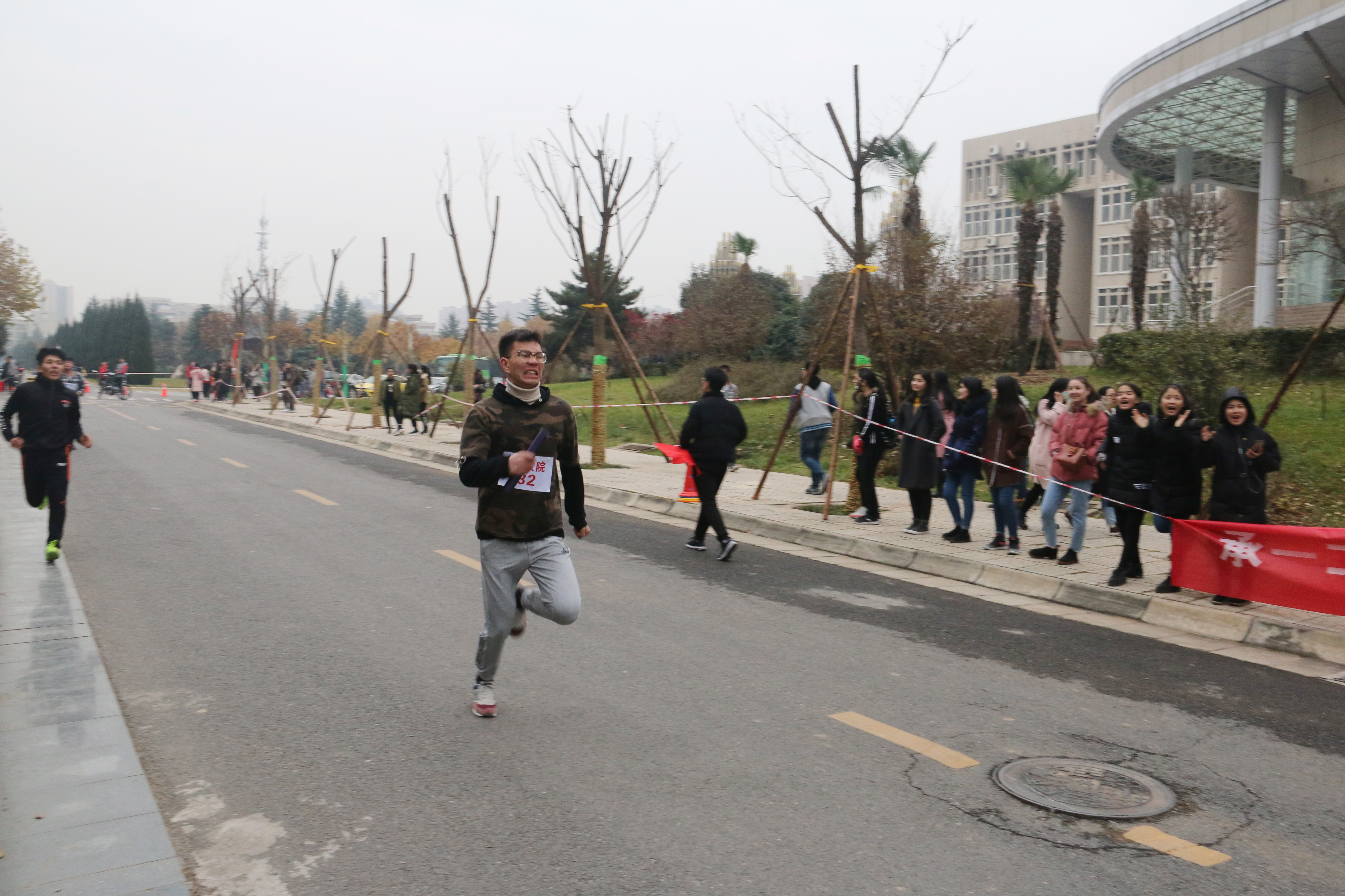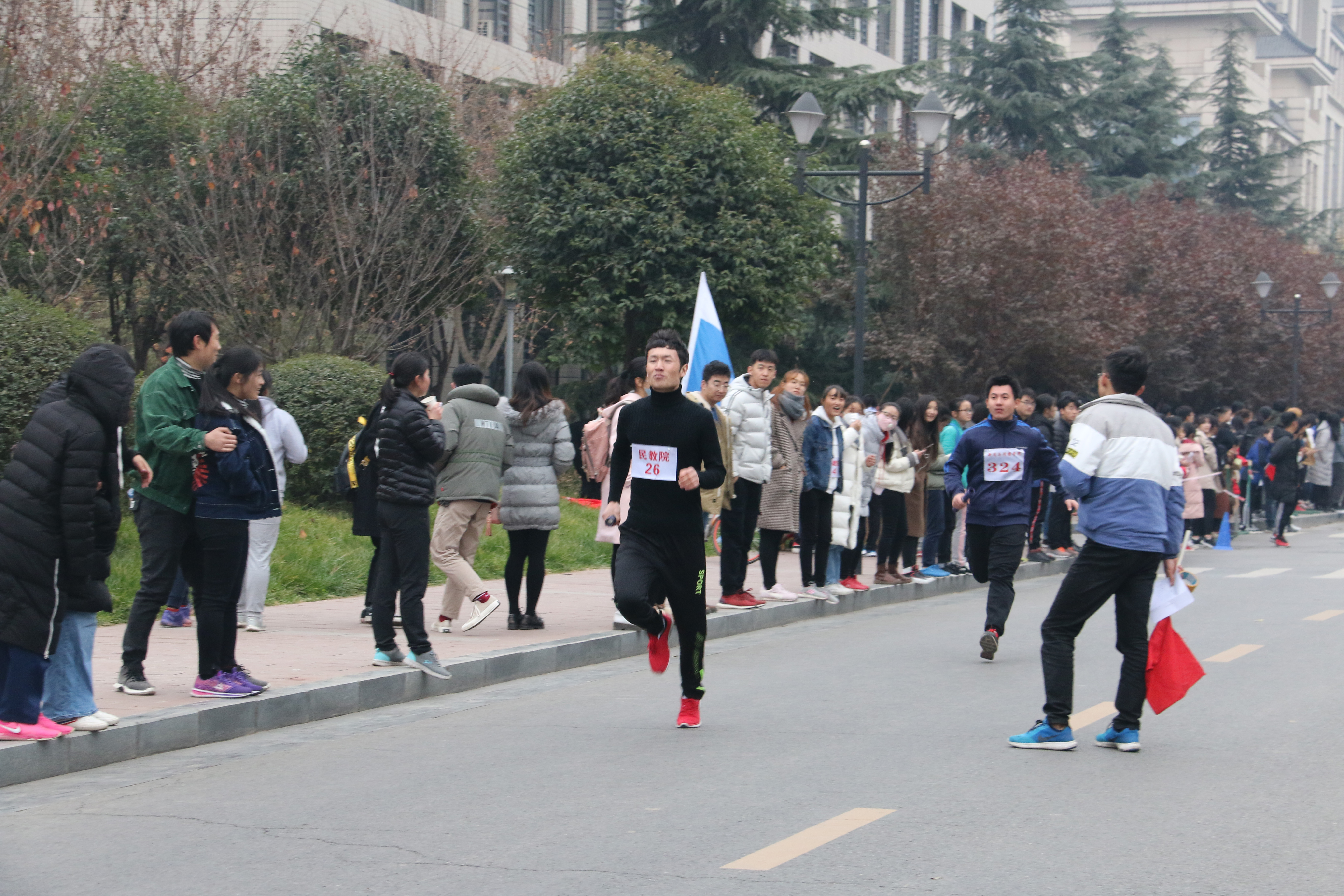 此次活动是我校一年一度的传统赛事。比赛以接力形式进行,全程21097.5米(半程马拉松)。全校共有20支代表队,将近640多名运动员参加。由我院派出的运动员女生22人,男生10人参加比赛。比赛还未开始,准备就绪的比赛现场就已人头攒动,各院旗帜招展,五颜六色地点缀在校园里,格外引人注目。随着一声枪响,比赛正式开始。蓄势待发的运动员们迈着矫健的步伐向前冲去。天气寒冷,北风萧萧,依旧阻挡不了运动员们奋力奔跑的身影。在这场速度与毅力的较量中,我院运动员们一个接一个地奋力奔跑着,每个脚步都伴着赛道两旁整齐有力的加油声,满怀激情,斗志昂扬,弘扬着新时代青年大学生的拼搏精神。接力棒传递着必胜的信念,传递着团结奋进的精神。老师和同学们的欢呼声,呐喊声也此起彼伏。志愿服务队的同学为运动员们准备好温水和饮料,提供了“温暖”的保障。在大家的共同努力下,我院最终喜获第六名。