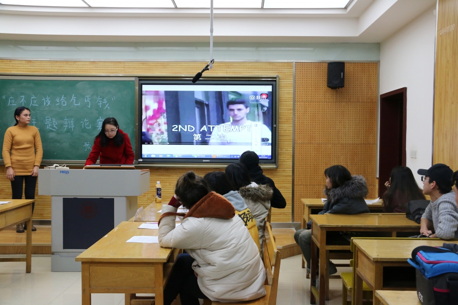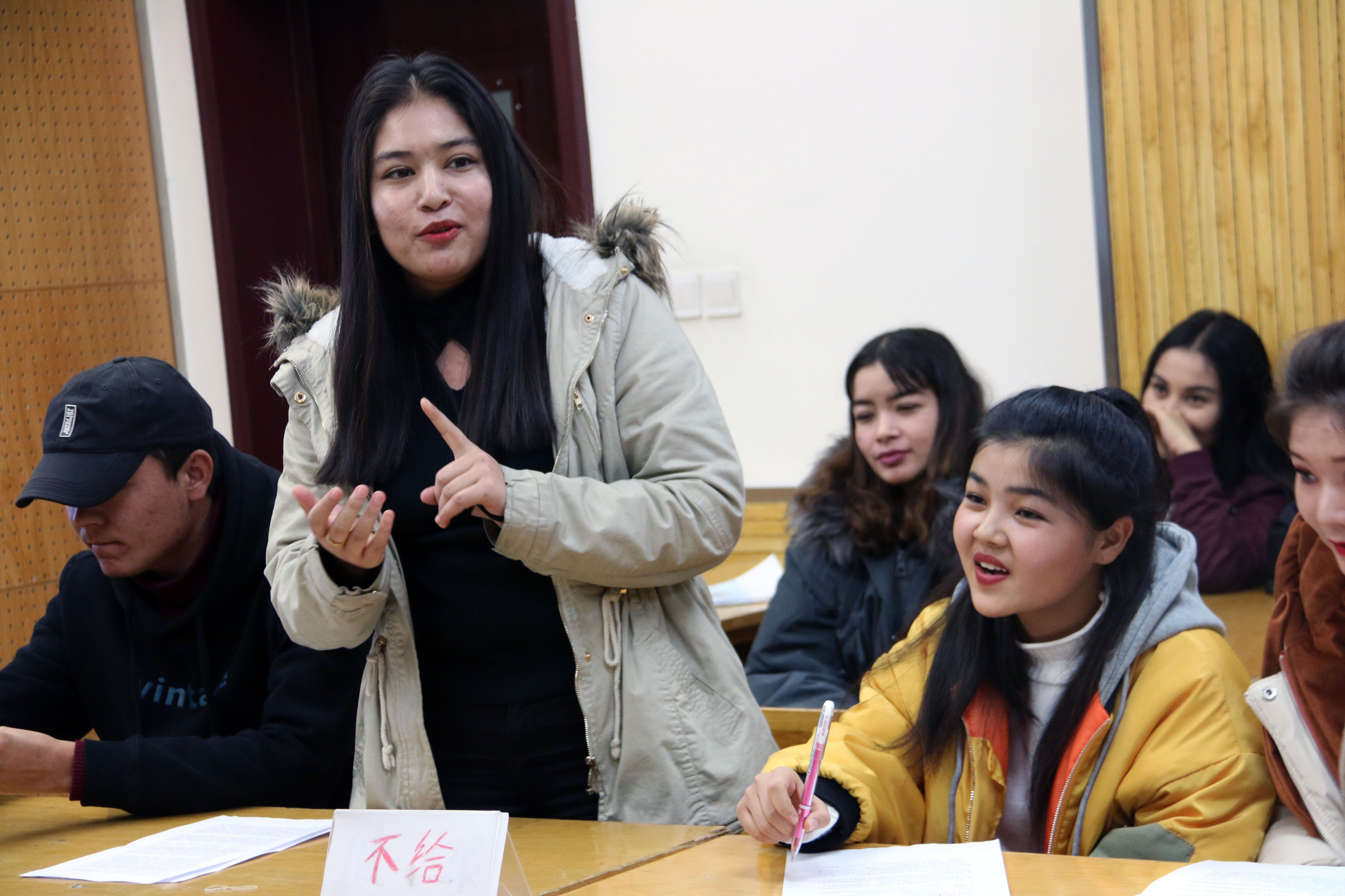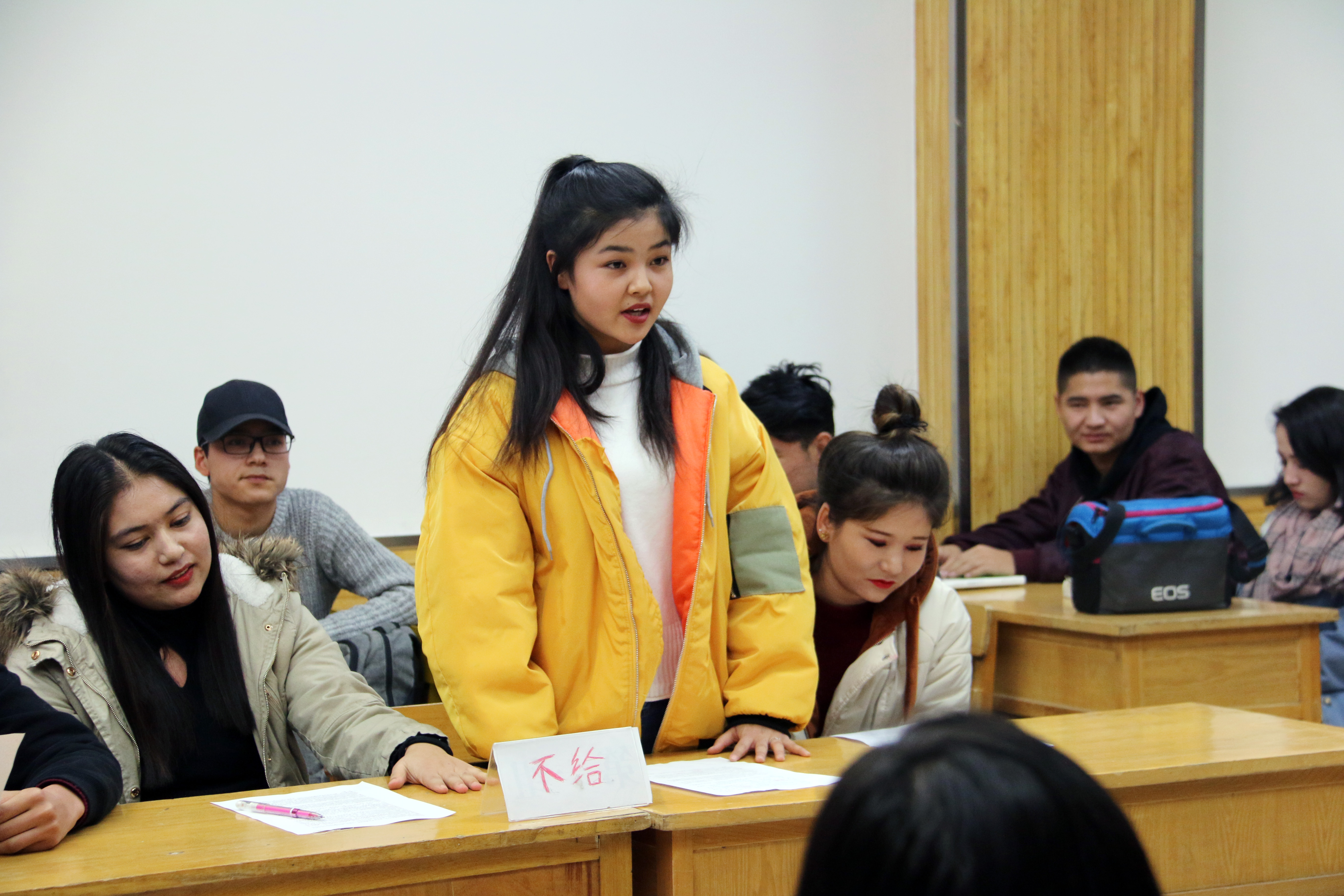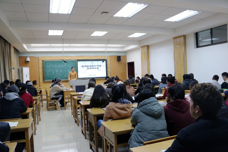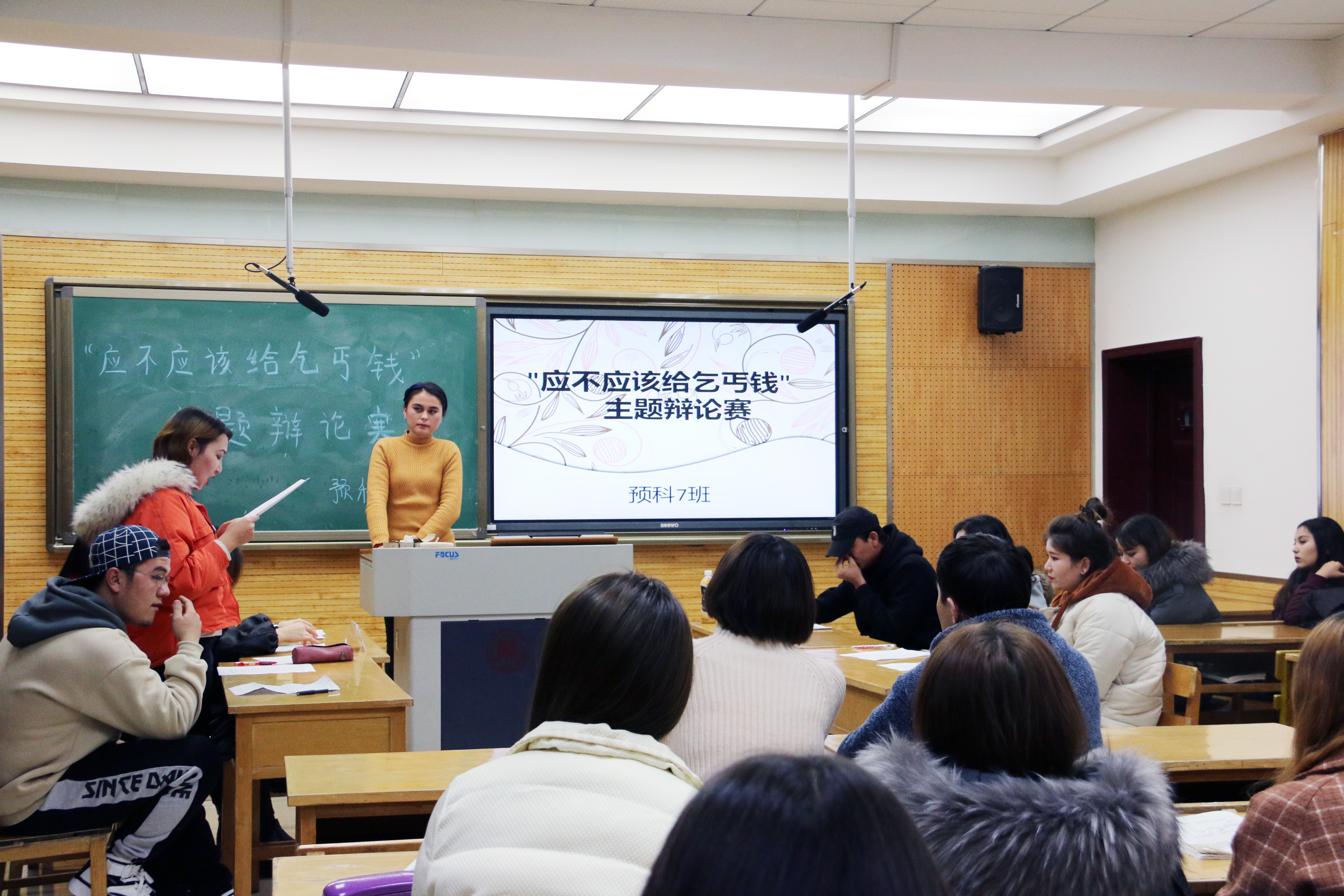 为了丰富同学们的课余文化生活,培养预科学生的思辨能力与汉语表达能力,12月22日晚,我院2016级两年制预科7班全体学生在五号教学楼5302教室,以“该不该给乞丐钱”为主题举行了一场辩论赛。此次辩论赛特邀我院语文教师谢欣然,专职辅导员热依木老师担任评委,辩论赛由团支书初格洛克·阿不拉合买提同学担任主持。
