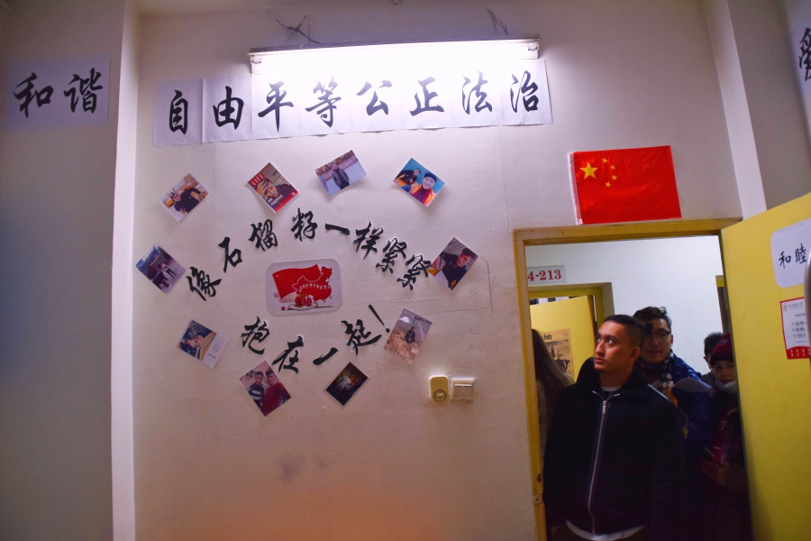 12月25日下午3点,宿舍文化节的评比活动正式开始。老师们及生活部干部先后走访参观了男生4-5号学生宿舍楼和2-3号女生宿舍楼。一进楼道,便能看见走廊上的相框里有学生们青春洋溢的笑脸,一望到小粉楼2栋三楼的走廊尽头,色彩艳丽的民族卡通画象扑入眼帘,那些别出心裁的宿舍主题风格和装扮创意更是令人眼前一亮,这些无一不显示出宿舍文化节浓厚的气氛。还有的宿舍墙上挂着的艾德莱斯绸,铺着民族风花纹桌布的桌子上摆放的馕,墙面上挂着的马头琴,都将民族文化融入生活之中。一些宿舍里挂着同学们手绘的人像画,精美的手工叠纸,得到了各位参审评委老师们的一致称赞。在参观过程中,老师们不仅对同学们参与宿舍文化节的热情表示肯定,同时对大家在宿舍评比中发现的问题提出了指导性的建议。