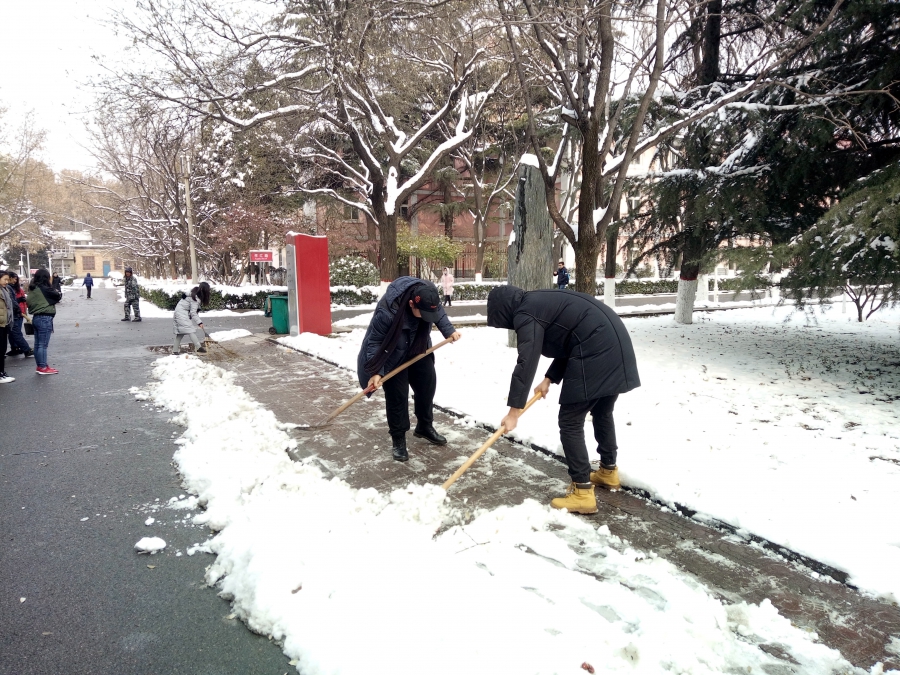 为突显学生骨干先锋模范作用,共建美丽、平安师大,保障师生安全出行,1月7午两点,我院积极响应校团委号召,在图书馆东侧学苑东路到六附楼前集体清扫积雪。辅导员、学生会主要学生干部入党积极分子以及志愿者参加了本次活动。