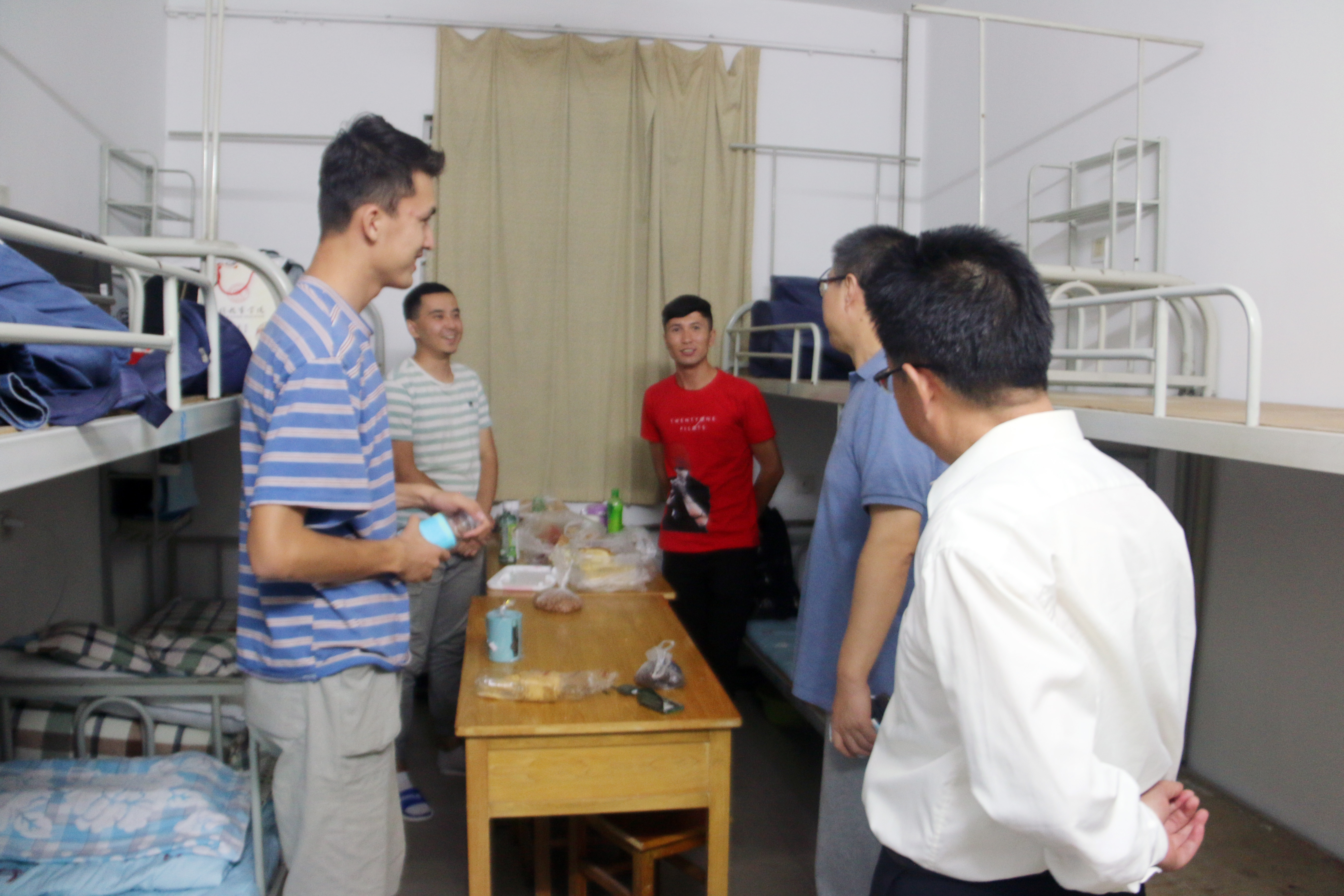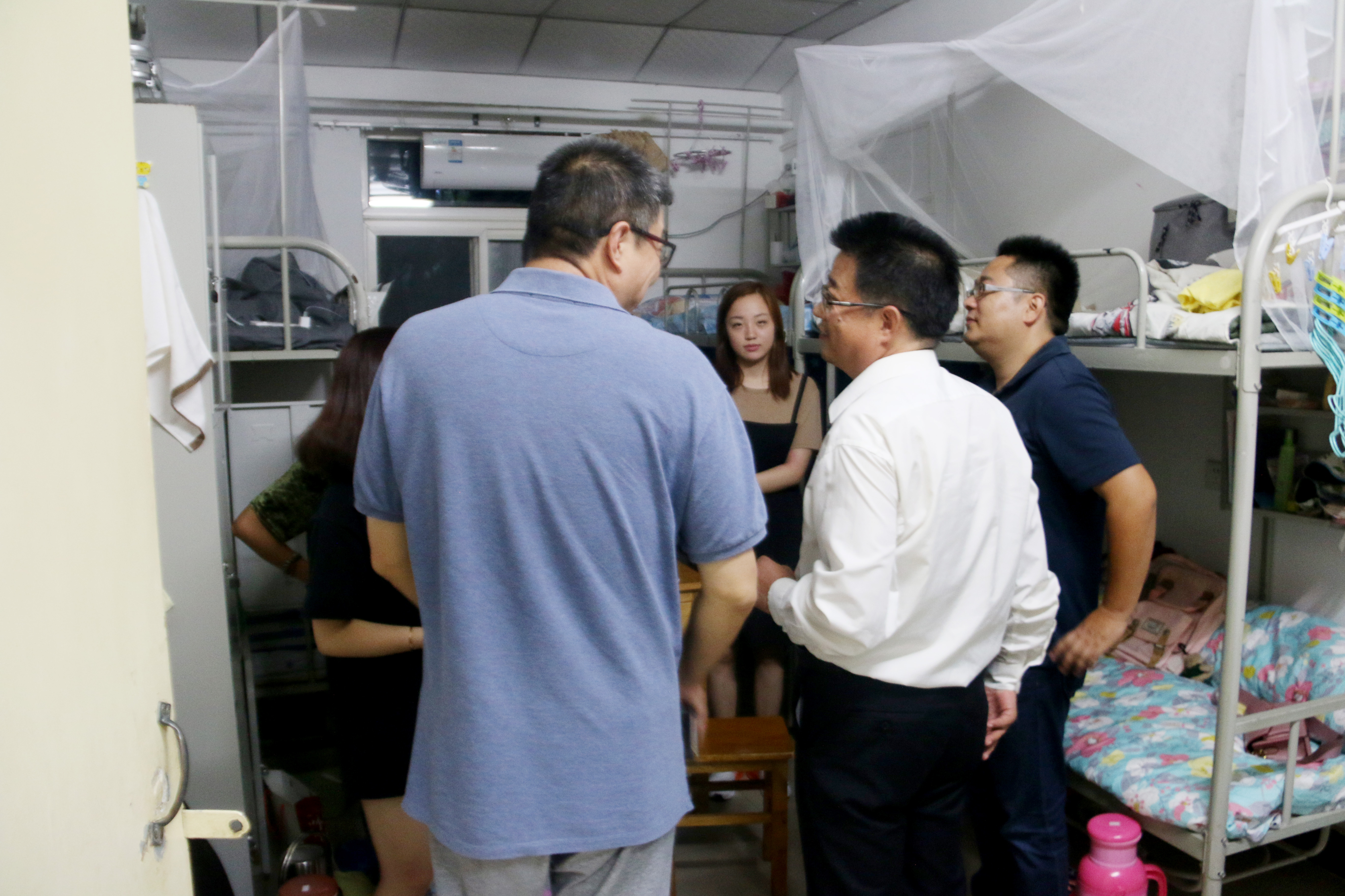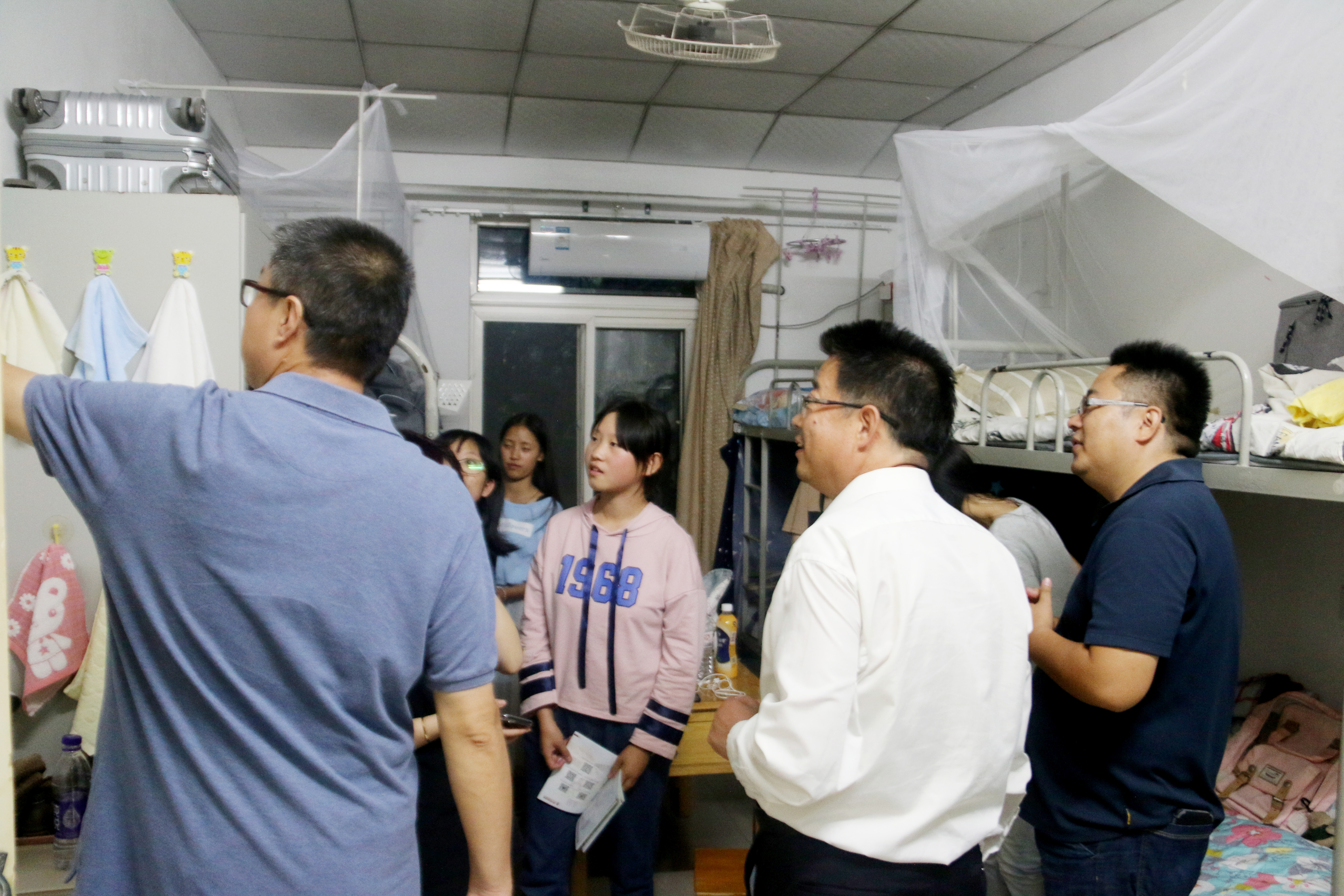 晚上7时,我院院长冯建新、党总支书记郑生忠、党总支副书记窦文阳和专兼职辅导员们对本届新生寝室进行了走访,此举体现了我院关怀学生、师生一体的学院精神。