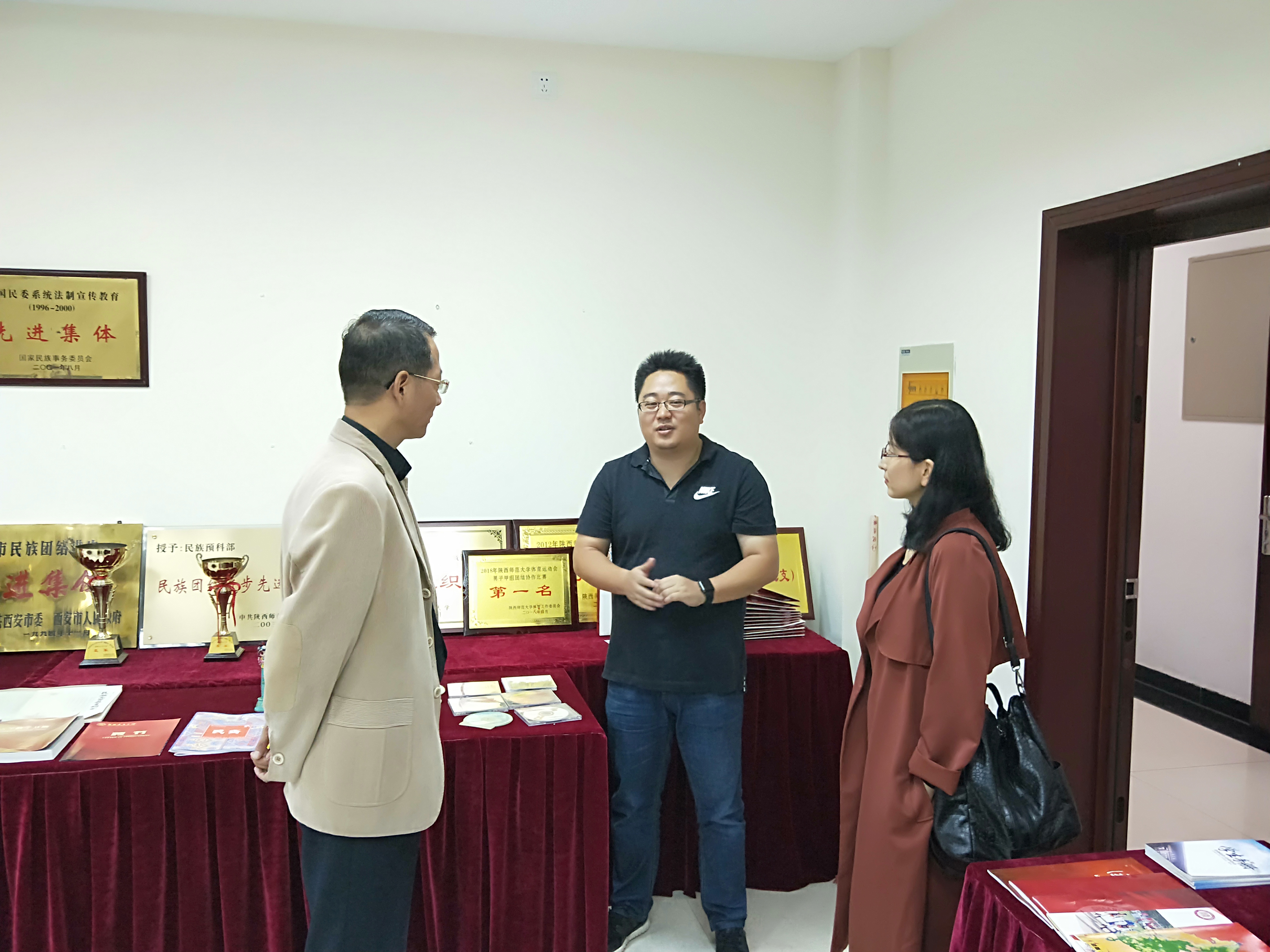 座谈会后,副书记窦文阳带领调研组分别参观了我院石榴籽工作坊(雁塔校区站)、学院“悦心坊”二级心理辅导站、学院文化墙和民族教育成果陈列室,介绍了学院的学生工作培养和管理等方面的相关内容和成果成效。