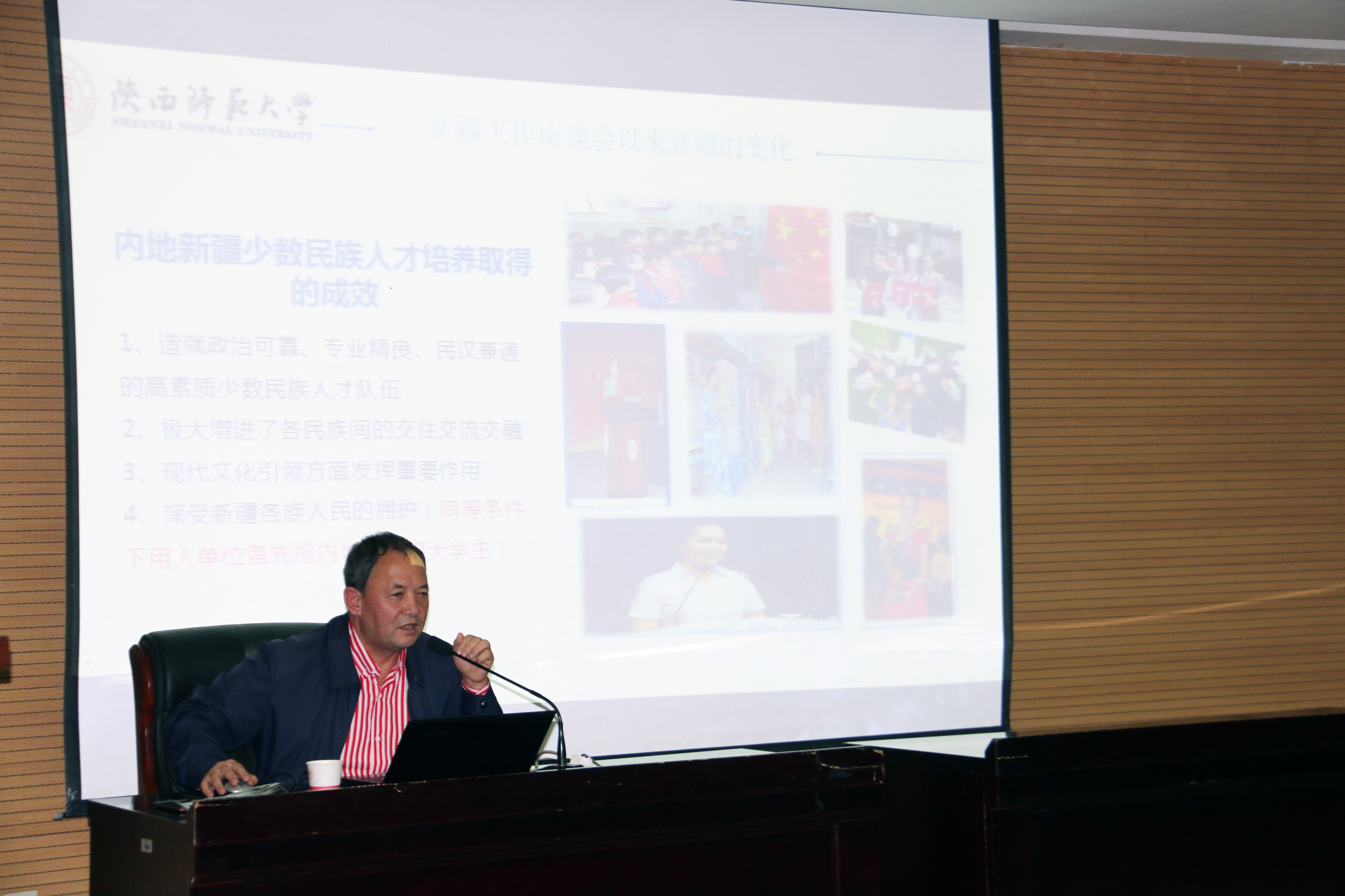买买提老师首先从新疆为什么派内派教师这个问题出发,引起学生对校园安全教育的重视。接着,向同学们讲述了国家对少数民族的政策,让同学们感受到了新疆翻天覆地的变化以及党和国家对新疆发展和人才培养工作的重视。他还向同学们介绍了少数民族榜样,号召同学们向榜样学习,并列举曾经出现的一些问题,希望同学们引以为戒。最后,买买提老师让同学们正确认识到了宗教,并介绍了党和国家的宗教政策及校园规定,和有关于防渗透的知识,并对同学们如何规划大学生活提出建议,希望同学们主动提高个人综合能力,树立起少数民族学生的良好形象。