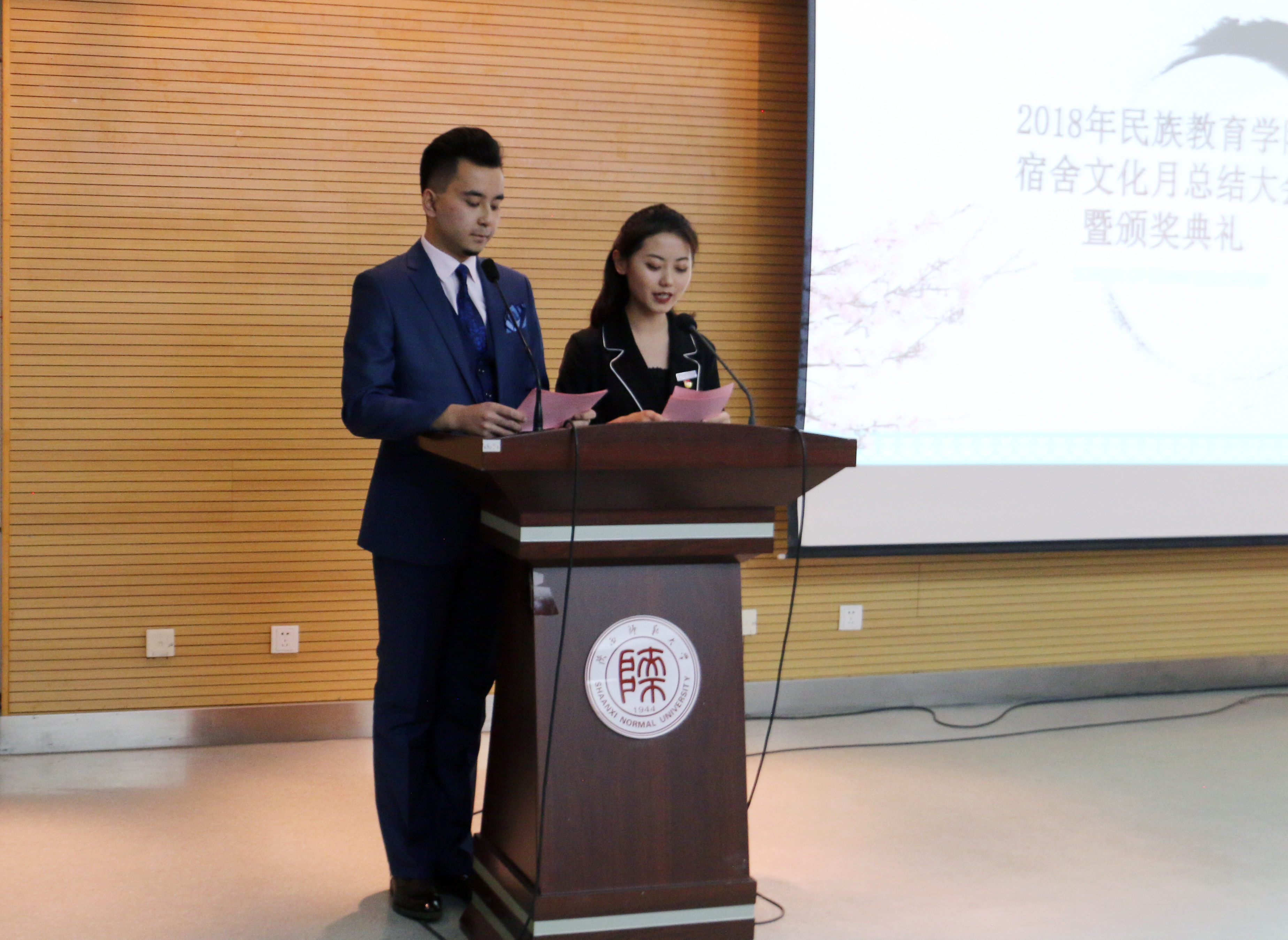 弘扬各民族优秀传统文化,加强民族预科宿舍的规范化管理,努力营造健康向上、和谐共融的宿舍文化氛围,促进学生宿舍关系的和谐发展。我院于11月初组织开展宿舍文化月,在为期一个月的宿舍文化月中,民教学子共同展现民族风情,共造和谐宿舍。12月6日19时30分我院2018年宿舍文化月总结大会暨颁奖典礼在崇鋈楼三层归仁堂顺利召开我院党总支书记郑生忠,党总支副书记、副院长窦文阳,班主任谢欣然,专兼职辅导员热依木许珊王国昌以及170余名学生参加本次总结大会大会由艾利卡木韩希玥同学主持,总结大会主要包括学生干部代表发言、学生宿舍代表发言,优秀宿舍、手工艺品展示以及宣布各类奖项评选结果并颁发奖项环节