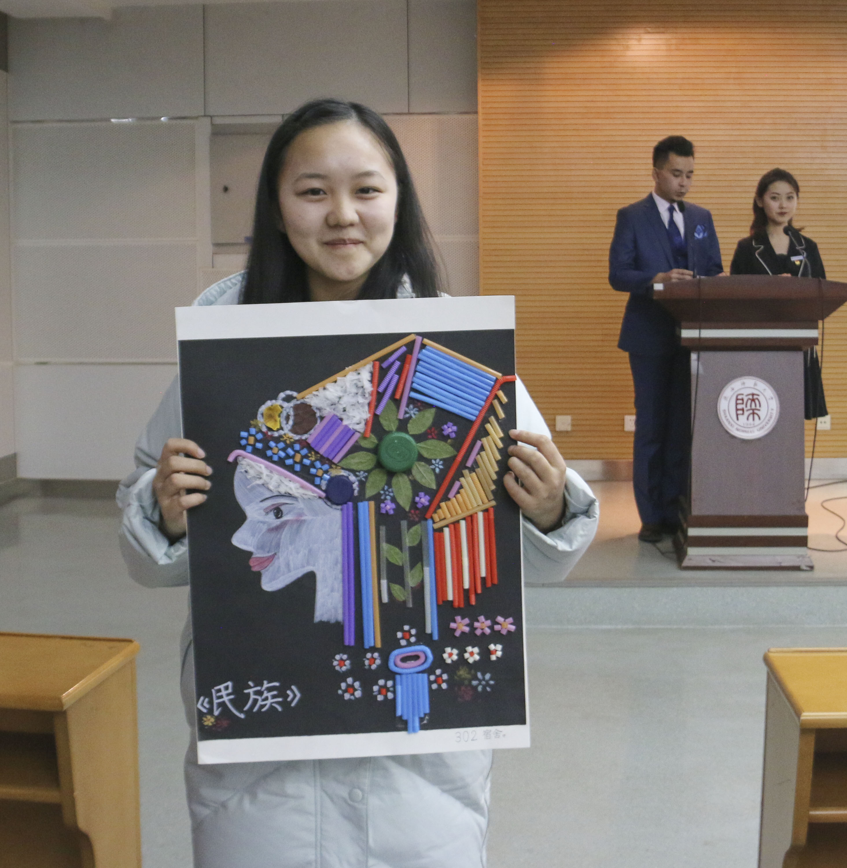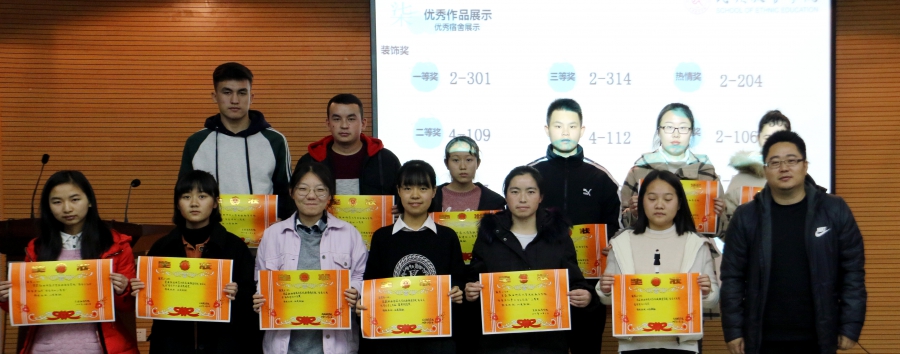 在总结大会中,首先,学生干部代表奥宁对本次宿舍文化月的开展工作进行了总结,随后,获奖学生宿舍代表卡德尔江用自己的亲身经历向大家讲述了参加本次活动后的心得体会和收获感受。然后,优秀作品展示环节中,我们欣赏了来自宿舍成员们共同完成的宿舍配音秀,我们看到了各个优秀宿舍装扮照片,宿舍手工艺品展示ppt展示和现场展示相结合,看到了来自各个宿舍风格迥异却无比用心的手工艺品有用银杏叶做成的小木房,用洗衣液废瓶与鲜花做成的小花盆,用快递盒和废纸板做成的小书架,用吸管,废纸,瓶盖,落叶等材料勾勒的具有浓厚民族特色的女生图案板等优秀手工艺品,在场的老师和同学们都对同学的才华表示了喜爱与赞扬。这些不仅锻炼了同学们的动手制作能力,更增强了他们之间的凝聚力,对所有同学来说,都是一份难以忘怀的记忆。优秀宿舍及优秀作品名单公布之后,由嘉宾老师和学生会主席为各宿舍代表颁发奖状并合影留念。