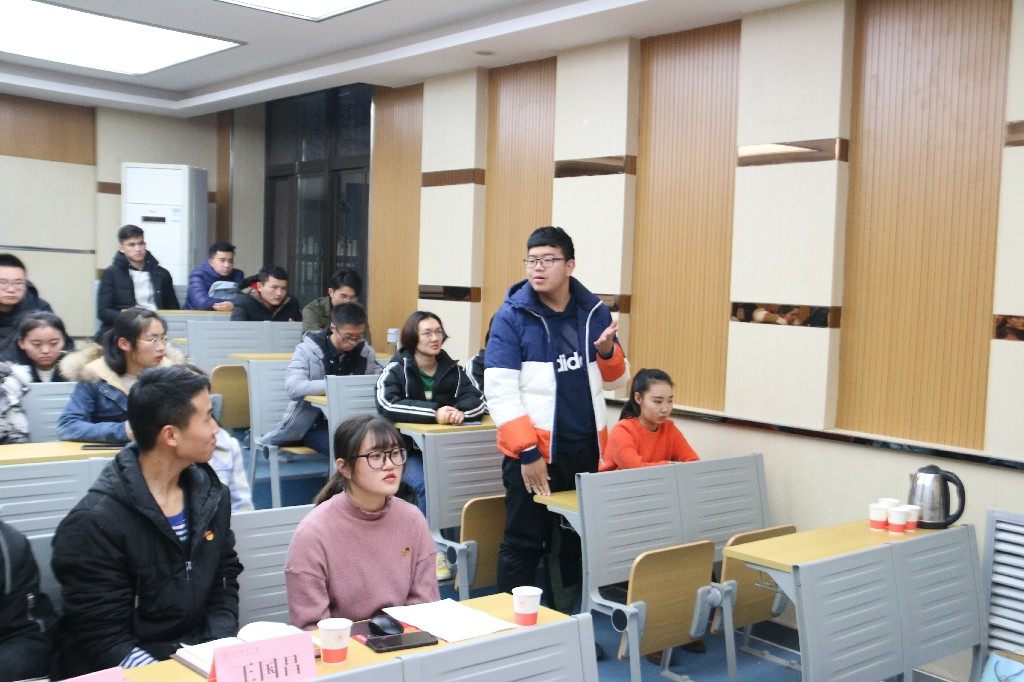庆祝改革开放四十周年,我院于2018年12月14日下午5点召开集体团课学习活动,辅导员热依木老师、兼职辅导员许珊老师、王国昌老师学生代表参加本次活动。此次团课由团支部副书记周杨洁同学主持,主要分为三部分:重温入团誓词、热依木老师讲述团课主题思想、王子超同学讲课。