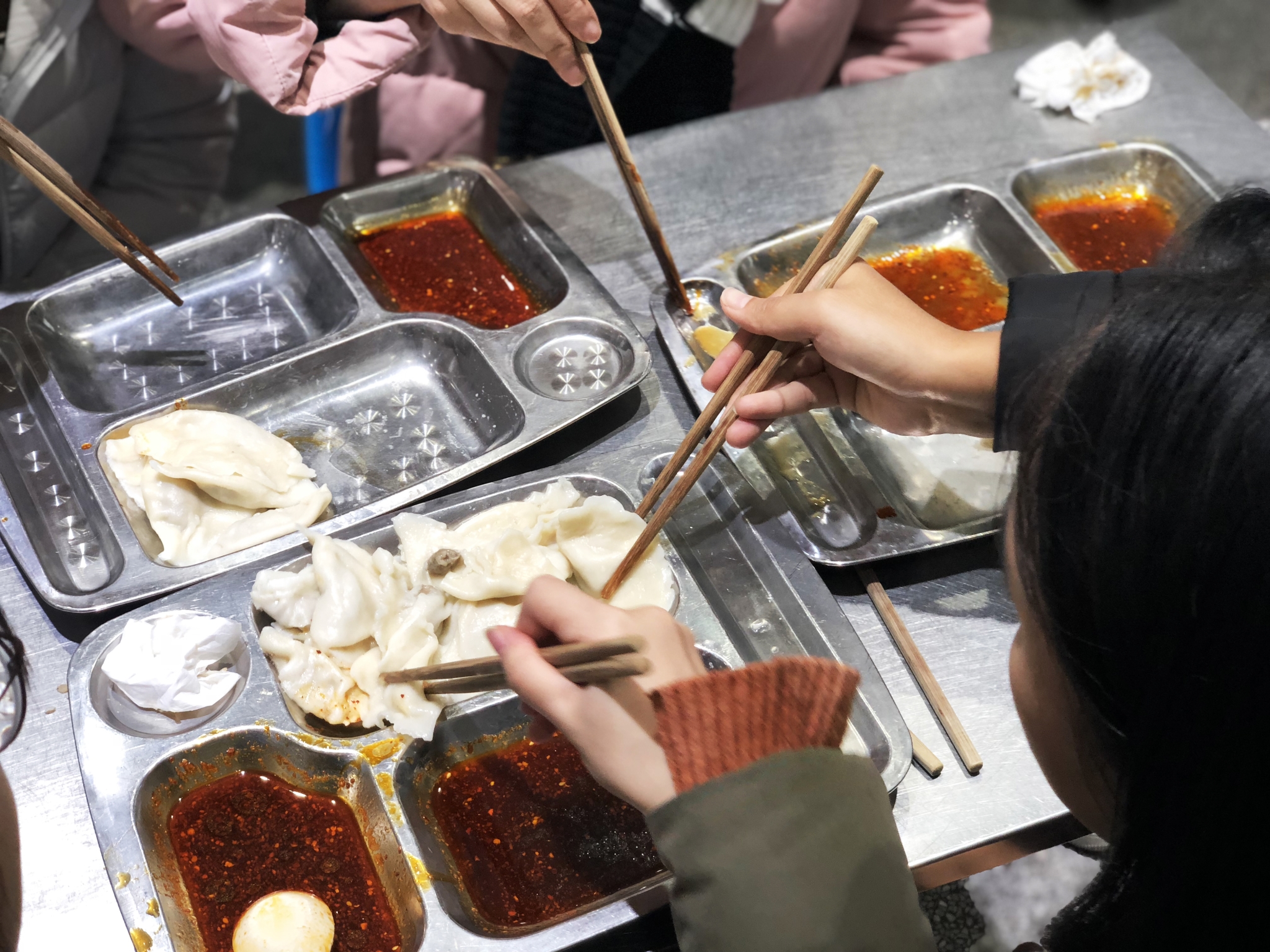 终于在大家不懈努力下,一盘盘饺子在大家的期待中被端到了餐桌上,经过一轮狼吞虎咽,饺子一扫而光。活动结束之后,大家一起分工合作,帮助食堂阿姨一起清理现场,等清理干净之后再一同离场。