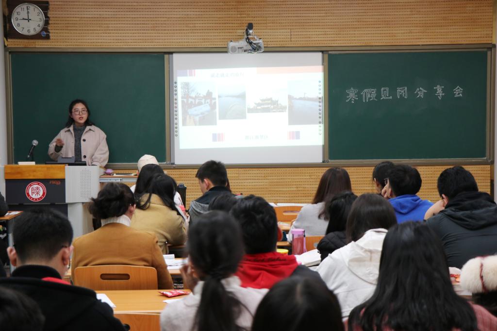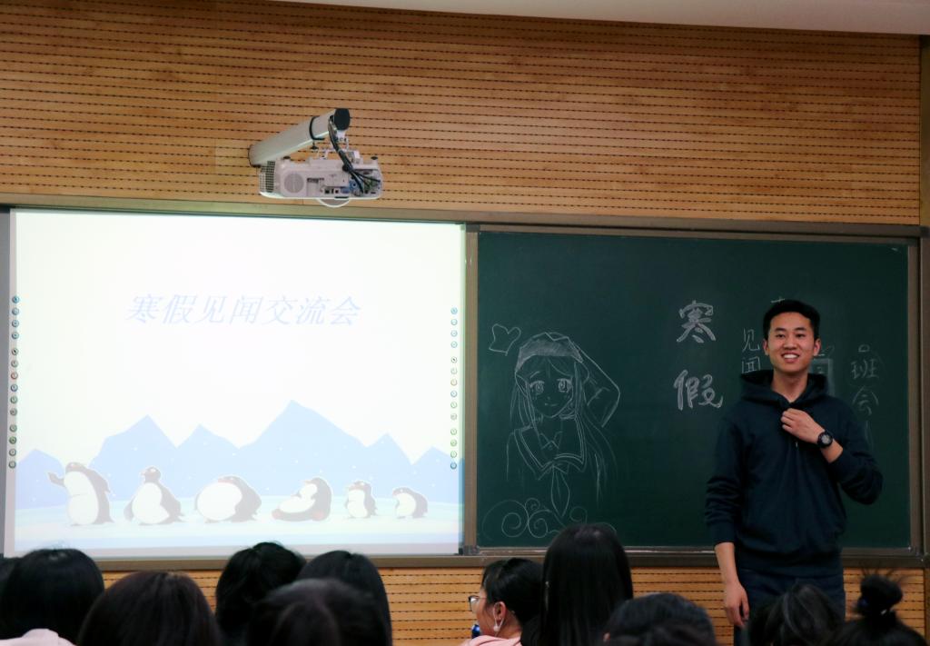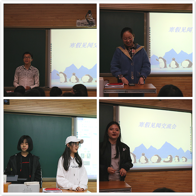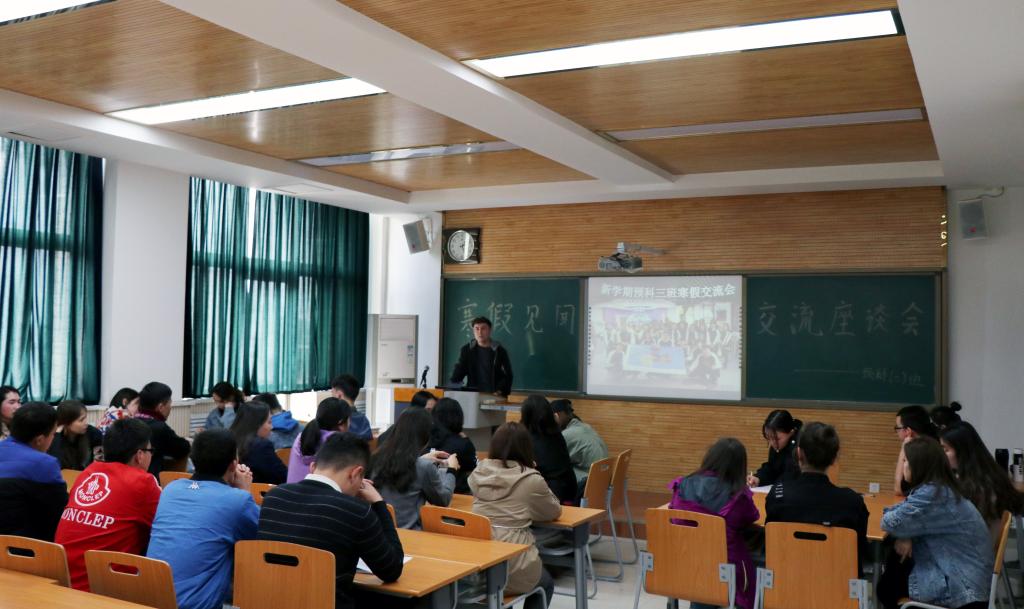 专兼职辅导员利用学生晚点名和晚自习时间开展了一系列生动有趣的寒假见闻分享座谈会。座谈会于2019年3月1日至3月7日在学院马列理论学习中心和各班教室开展。