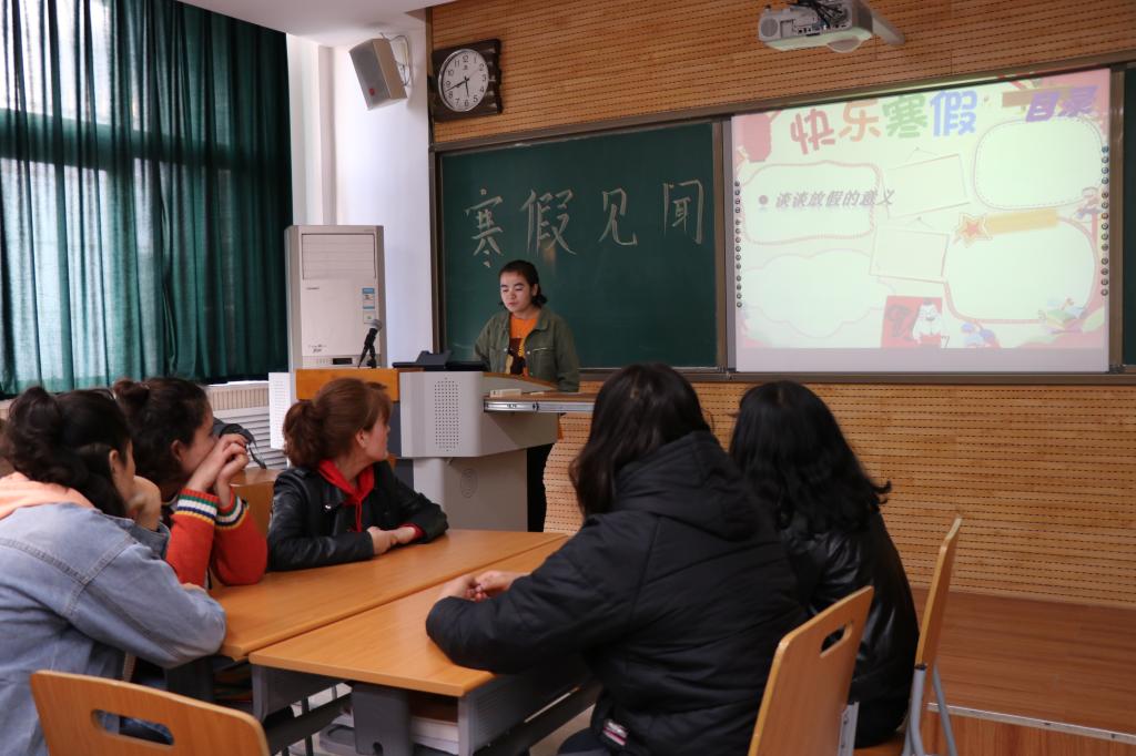 辅导员热依木老师给同学们分享了他自身最近关于中国宏观经济最新走势的学习感悟:关于中美贸易战,关于生态文明和供给侧结构性改革、关于“一带一路”战略等。他鼓励同学们多读书多关注时事政治,家事国事天下事,事事关心;兼职辅导员老师也分享了自己在寒假期间的所见所感同时各自对本次的寒假见闻分享会做出总结,表示同学们的寒假时光都过得都很充实很快乐,在祖国成立70周年之际,同学们作为各个少数民族的骨干和未来力量,作为新时代的莘莘学子和优秀青年,应当以学习为己任,以社会责任为担当,奋勇争先,在新的学期里勤奋学习,积极的参加各项集体活动,增强自身学习能力和提高自身素质,为班集体建设奉献出自己的力量。