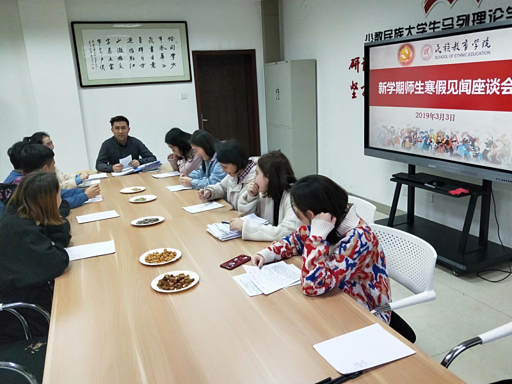 “短暂的假期,深刻的感悟,新学年我要坚持刻苦学习,再接再厉!”,来自新疆和田地区的吾布力卡司木·买提库尔班说到,他谈到了自己在上学期的学习和生活由刚开始的种种不适到学期末的习惯和适应的心路历程,表达了自己对老师和同学们的感恩和感动。时值国家庆祝改革开放40周年之际,2018级预科三班谢日古丽·穆萨同学说到自己家乡的巨大的新变化,自己如今的求学机会都得益于党的好政策,得益于40年改革开放的成果,感到自己生活在这个时代,这个国家是何其的幸运,为祖国感到骄傲和自豪,并坚信今后会加倍的珍惜这来之不易的生活环境,要刻苦学习,学好国语,努力让自己成为德智体美劳全面发展的社会主义建设者和接班人。2017级预科4班阿尔孜姑·卡地尔同学畅谈了新中国成立70周年以来家乡的变化,越来越宽的马路、越来越好的生活环境和教育环境,从这些生活的一点一滴变化感受到中国梦正在一步步实现。座谈会上也有的同学讲述了党和国家大力扶贫、精准扶贫政策给自己的家庭带来的巨大帮助,并表达了对党和政府的感激。有的同学还分享了参加寒假实践活动的经历,二十多天的服务工作虽然辛苦,但收获颇多,体会到挣钱的不容易,并表示新学期要好好努力学习,争取拿到奖学金以帮父母减轻负担。