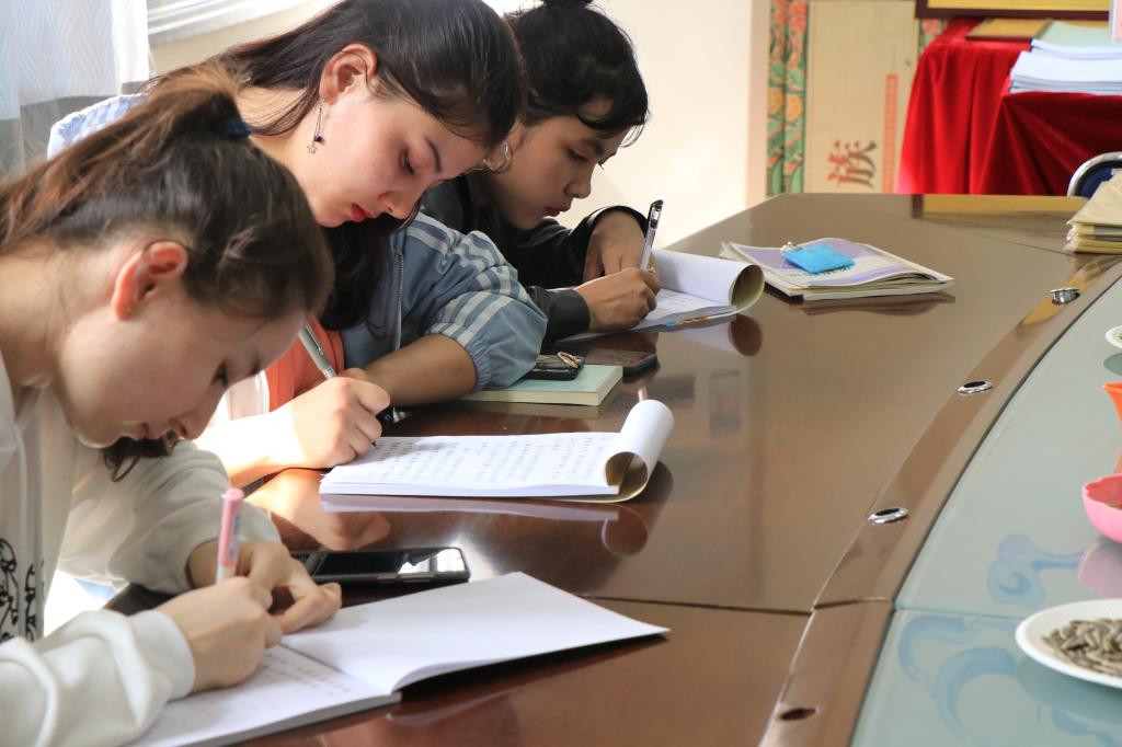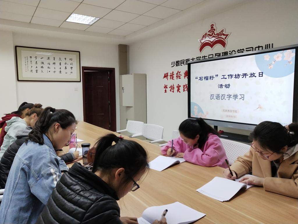 六附楼少数民族大学生马列理论学习中心,在一笔一画的描摹中细品汉字的韵味。