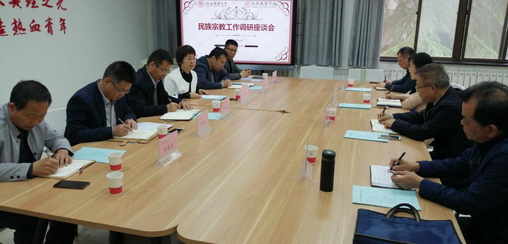 与会相关单位负责人还就我校少数民族预科生教育管理与服务、少数民族学生思想政治教育、校园和谐安全稳定、留学生事务管理等内容,与调研组进行了交流。