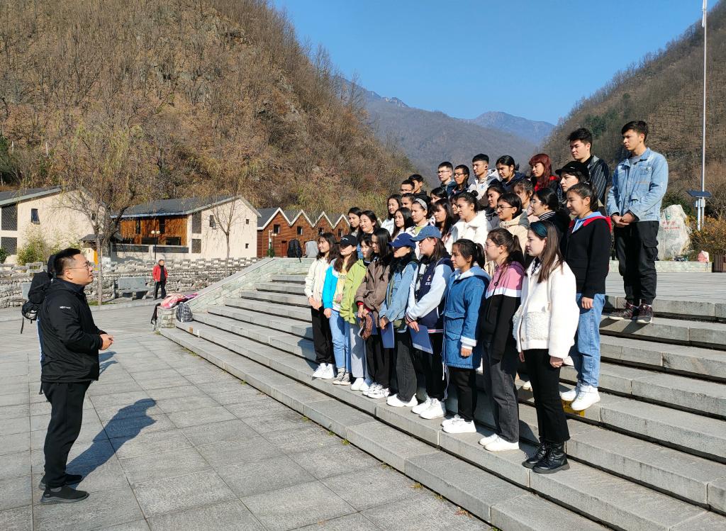 活动伊始,专职辅导员热依木老师对本次主题学习教育实践活动的目的、意义和内容做了简单介绍,随后学院党总支书记郑生忠向学生们做了现场授课,他讲到秦岭作为中国地理上的南北方分界线、气候上的暖温带与亚热带分界线,还是水文上的黄河水系与长江水系的分界线,有着“国家中央公园”的美誉,要求同学们一定多了解我们美丽的家园,要深刻认识到新一代青年是实现中华民族伟大复兴中国梦的最强主力军,希望同学们能够在本次与自然环境的亲密接触中领悟到秦岭自然生态环境保护的重要意义,保护好秦岭生态环境和我们的家园,发展好我们的家园,勇担时代重任,为实现“两个一百年”奋斗目标,为中国人民美好生活的向往做出自己的努力和贡献,成为美丽家园的建设者和传扬者。接着,我院党总支副书记窦文阳指明了开展此次主题教育实践活动的重大意义,强调了活动中的安全注意事项,并希望同学们充分发扬团队精神顺利完成活动内容。最后,预科三班同学们分享了集体诗歌朗诵“盛世中国”,表达了他们对祖国的无限热爱和深厚感情。