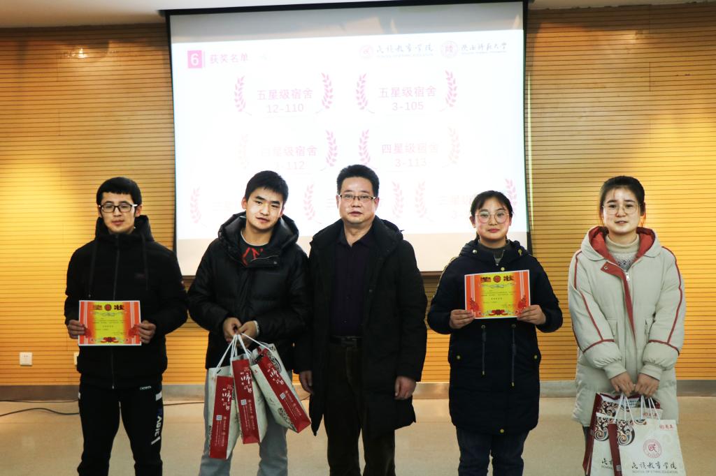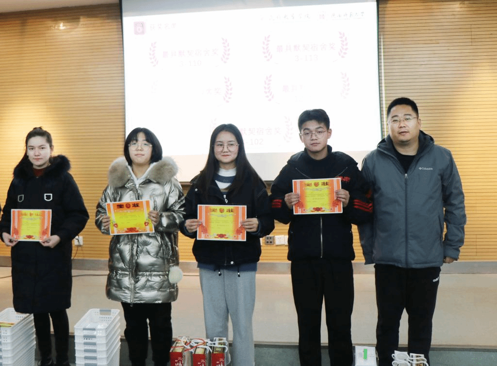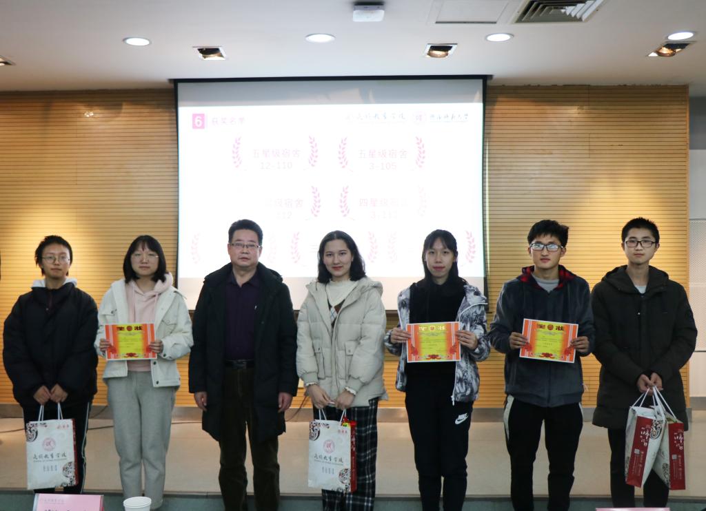 大会上,主持人向参会人员介绍布奖项评选流程及评选标准,并宣布评选结果。本次宿舍文化节共评选出“星级宿舍”7个,“最具默契宿舍”5个,“最具人气奖”2个,学院老师和学生代表向获奖宿舍代表颁发奖状及奖品并合影留念。