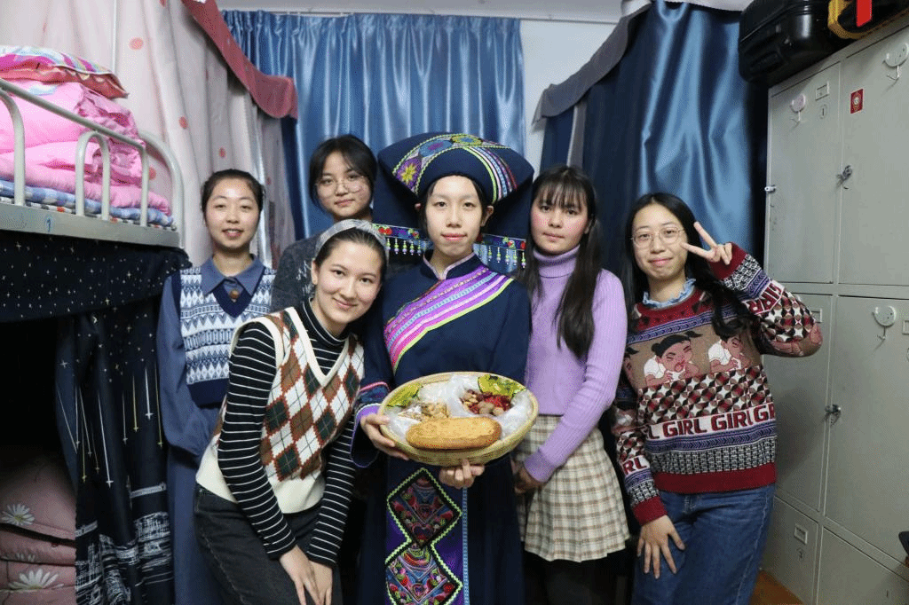 随后,学生骨干代表、生活部部长潘保茹做文化节活动总结发言,向本次宿舍文化节给予大力支持和帮助的老师们和积极参与的全体同学表示感谢,对取得优异成绩的集体表示祝贺。潘保茹同学说道:“本次宿舍文化节以民族团结为主线,对促进同学们之间的交往交流交融,互帮互助,构建和谐校园环境具有十分重要的意义,活动圆满结束后,同学们不约而同的在民教院2020级的QQ群里发‘民教院一家亲’的信息,同学们团结的精神态度令人十分动容。我希望通过这些活动同学们能深感‘民族团结一家亲’的重要内涵,更加珍惜民族团结,乐享民族团结带给我们的欢乐与喜悦。”