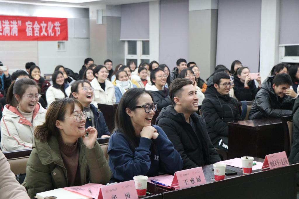12月15日19:00,我院在雁塔校区崇鋈楼思齐堂召开2020年“寝意暖暖,默契满满”宿舍文化节总结大会暨颁奖典礼。学院党总支书记郑生忠,党总支副书记、副院长窦文阳,专兼职辅导员热依木、王雅丽、张雨,学生骨干及各宿舍代表参加了本次大会。大会由预科一班覃小苡和预科二班马博亚主持。