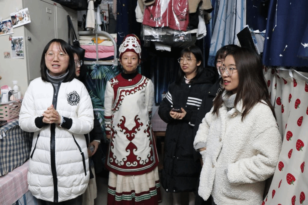首先,学生代表马佳睿同学向参会人员分享她在本次宿舍文化节的所见所闻所感。她将“默契大考验”活动中体现出的精神总结为:团队精神,竞赛精神,互助精神;将“室全室美”活动总结为三个方面:温馨有爱、文化交融、包容制约、民族团结;最后她说到:“各民族的同学穿上自己民族服装,表演各自民族才艺,我感受到了同学们都将各自民族文化展现给大家,让同学们学习了解各民族的文化和特色,在宿舍合影上看到大家的笑脸,体现出了大家对少数民族文化的尊重,热爱中华民族的情感以及同学之间的民族凝聚力。”