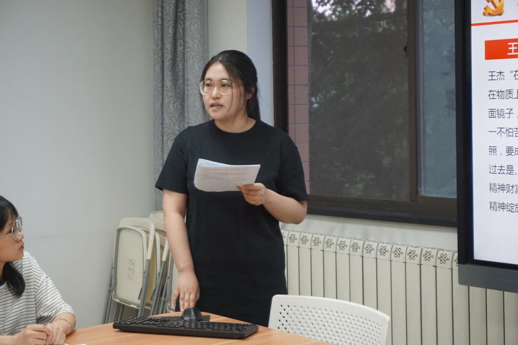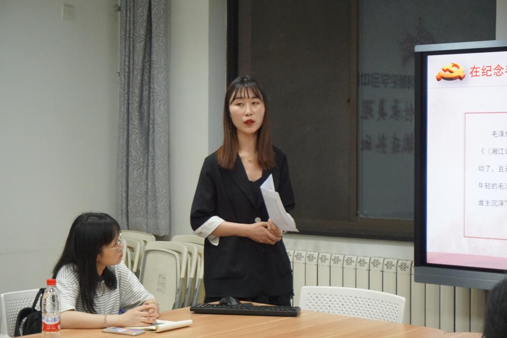 首先,学生会副主席张锦辉宣布本次团校培训开始。随后,贾筱倩同学对“革命精神是党和国家的宝贵财富”和“革命老区是党和人民的根”两方面进行了详细的介绍,使同学们对党百年来的革命精神和革命老区建设有了更深入的了解。周晓丹同学在讲解了“在纪念毛泽东同志诞辰120周年座谈会上的讲话”和“崇尚英雄、学习英雄、关爱英雄”两部分内容后发表了感悟与思考:“实现我们确立的奋斗目标,需要全党全国各族人民更加紧密的团结起来,勿忘昨天的苦难辉煌,无愧今天的使命担当,不负明天的伟大梦想,下定决心,排除万难,在中国特色社会主义伟大道路上,为实现中华民族伟大复兴的中国梦,前进!”