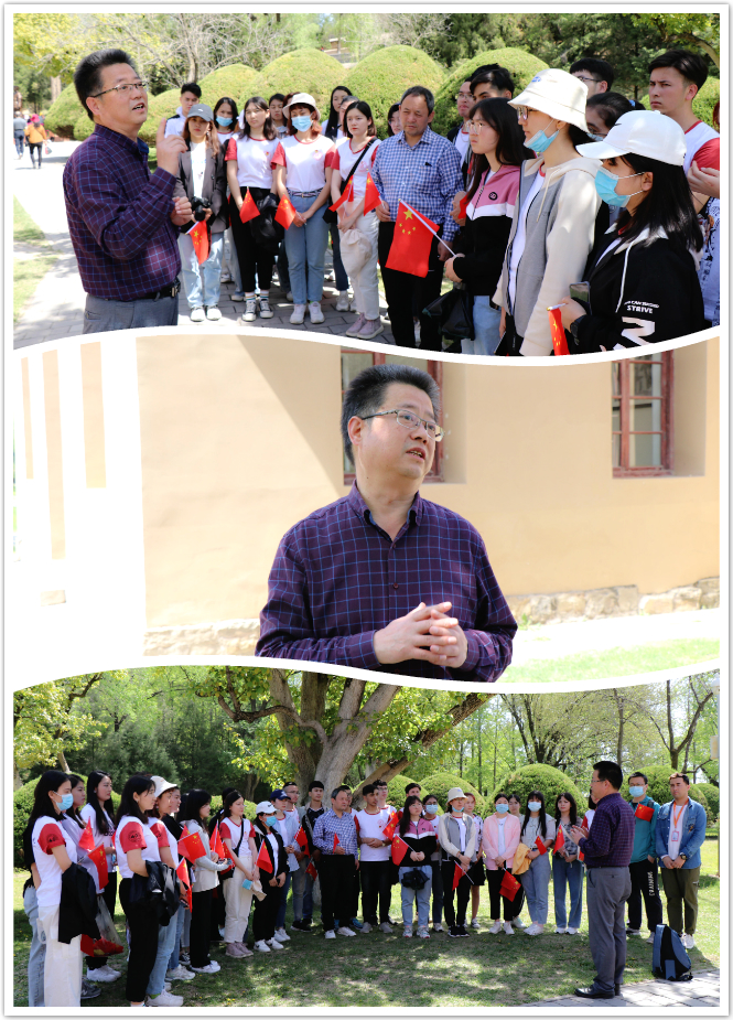 参观结束后,学院党总支书记郑生忠在黄帝陵以“弘扬中华民族优秀传统文化、担当时代赋予的责任与使命”为题向同学们做了第二次现场教学。他向师生介绍了此次党史学习主题教育实践活动的目的和意义,并讲到此处黄帝陵是轩辕黄帝的陵寝所在地,中华文明的精神标识,是中华民族之根、中华文明之源,在弘扬民族文化、增进民族团结、激励爱国热情、促进祖国统一等方面发挥着不可替代的纽带作用。他说到带大家来延安和黄帝陵,使大家要铭记革命先辈们的丰功伟绩,深刻认识到新中国从成立到现在幸福生活的来之不易,那是革命先烈抛头颅,洒热血,用他们英勇无畏的奋斗精神换来的,因此我们要加倍珍惜现在的生活。我希望同学们作为时代新人,缅怀革命先烈,深刻感悟党的根本宗旨,能够成为中华民族优秀传统文化、民族精神、时代精神的继承者、传播者和实践者,要热爱祖国,去传承革命精神,坚定跟党走的信念,践行社会主义核心价值观,在生活上要勤俭节约,工作或是学习上要刻苦努力,为祖国发展、家乡建设奉献青春智慧,为实现中华民族伟大复兴的中国梦贡献一份力量。
