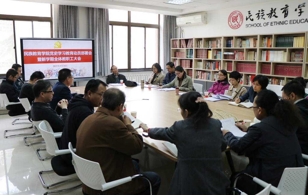 首先,院长冯建新传达了学校2021年工作部署会上游旭群校长和李忠军书记的讲话精神及学校2021年工作要点。他结合学校会议精神和工作部署,从学院发展方向、师资队伍建设、文化建设、精细化教学管理、教学科研、学生管理与服务育人等方面对新学期重点工作进行了全面部署。他指出,2021年是中国共产党建党100周年,是“十四五”开局之年,学院领导班子将在学校党委与行政的领导下,全面总结十三五期间建设经验,并结合新时期教育评价改革总体方案,围绕学校的中心工作任务,根据学院2021年工作计划,与全院教职员工一道,为实现学院民族教育高质量发展,共同努力!