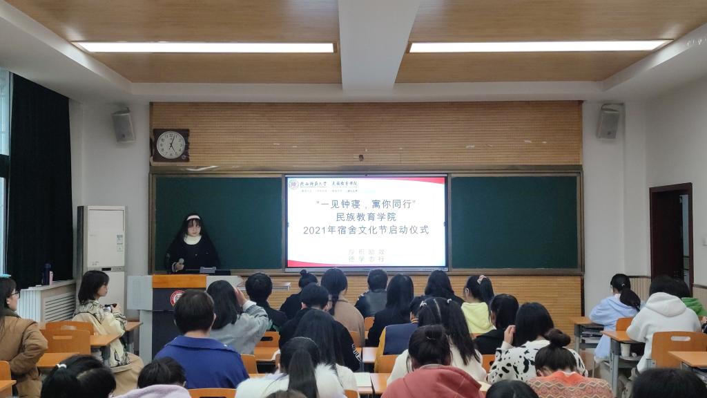 2021年11月16日17:00,同学们期待已久的“一见钟‘寝’,‘寓’你同行”宿舍文化节启动仪式在教学九楼9705教室成功举行。学院团总支书记热依木·努尔麦麦提、辅导员王霞、兼职辅导员夏逸静出席启动仪式,启动仪式由预科一班张敏捷主持。