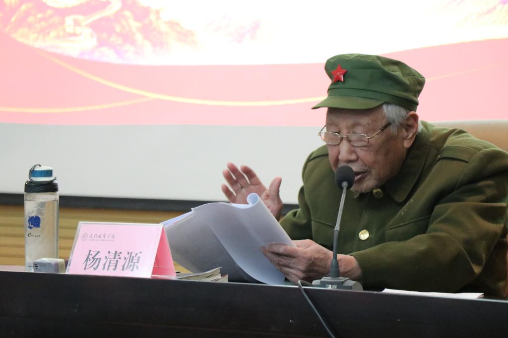 退休教授、抗美援朝老战士、我校首届“西部红烛两代师表奖”获奖者杨清源受邀为学院全体学生作“弘扬伟大长征精神,走好新时代长征路”主题报告。cableav