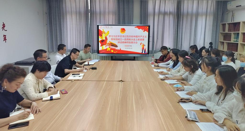 在六附楼305会议室组织召开了学习“习近平总书记在庆祝中国共产主义青年团成立100周年大会上的讲话师生座谈会”。