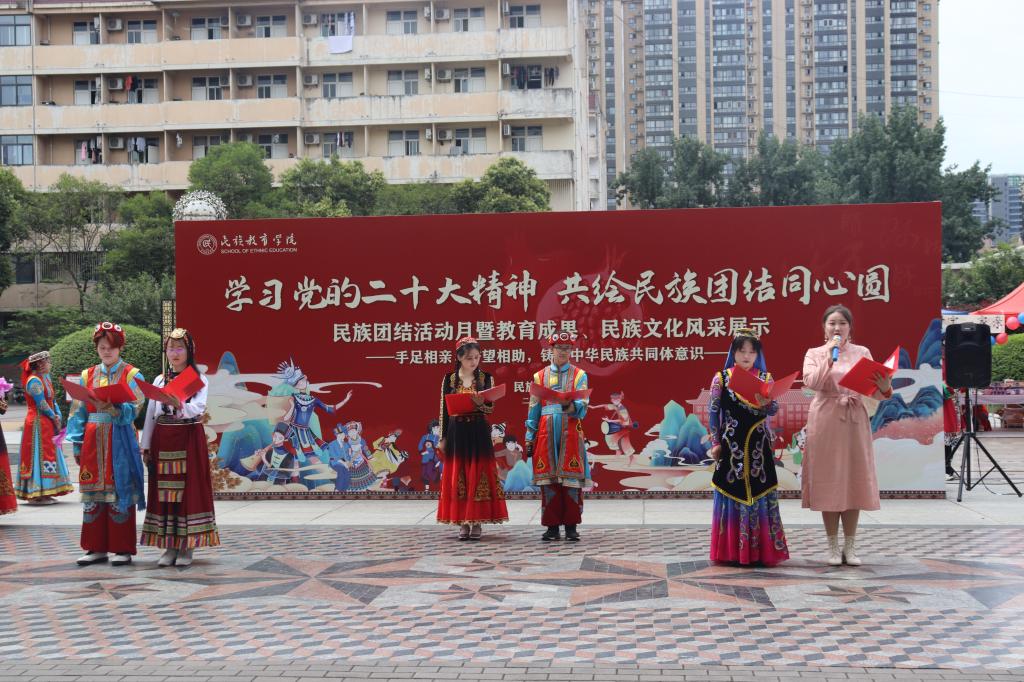 在雁塔校区喷泉广场隆重举行“学习党的二十大精神,共绘民族团结同心圆”民族团结活动月暨教育成果、民族文化风采展示活动。