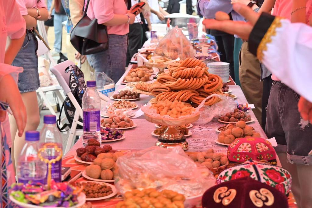 除了让人口齿留香的美食和应接不暇的表演,活动还设置了“民族传统体育项目体验区”,鼓励师生携手共同感受民族体育运动魅力,在投壶竞技、高脚和押加体验中实现各民族文化交流、情感融通。