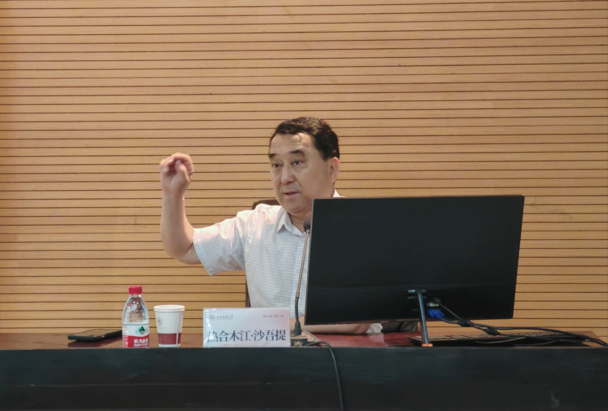 热合木江·沙吾提教授从“铸牢中华民族共同体意识”理念的形成与创新,铸牢中华民族共同体意识的理论内涵与重大意义,铸牢中华民族共同体意识,推动边疆少数民族地区高质量发展等方面深入浅出的讲授了中华民族共同体意识的理念的形成、发展及未来。深入讲述中华民族共同体意识是国家统一之基、民族团结之本、精神力量之魂的价值导向。他强调中华民族共同体意识是中国历史发展的必然产物,集中体现了中华民族共同心理特征,是维系中华民族团结统一的强大精神纽带和推动中华民族发展进步的强大精神动力,铸牢中华民族共同体意识、推进新时代党的民族工作高质量发展,是全党全国各族人民的共同任务,作为教育工作者我们要坚定政治立场,勇担育人使命,进一步加强思想政治理论学习,提高思想政治教育工作水平;而作为新时代青年要主动了解和正确认识中国特色社会主义所处的历史方位和国内外形势,学深悟透党的民族创新理论,充分认识铸牢中华民族共同体意识教育的重要意义,不断强化自身思想和能力建设,自觉践行“四个与共”共同体理念、毫不动摇地忠诚捍卫“两个确立”、增强“四个意识”、坚定“四个自信”、做到“两个维护”。
