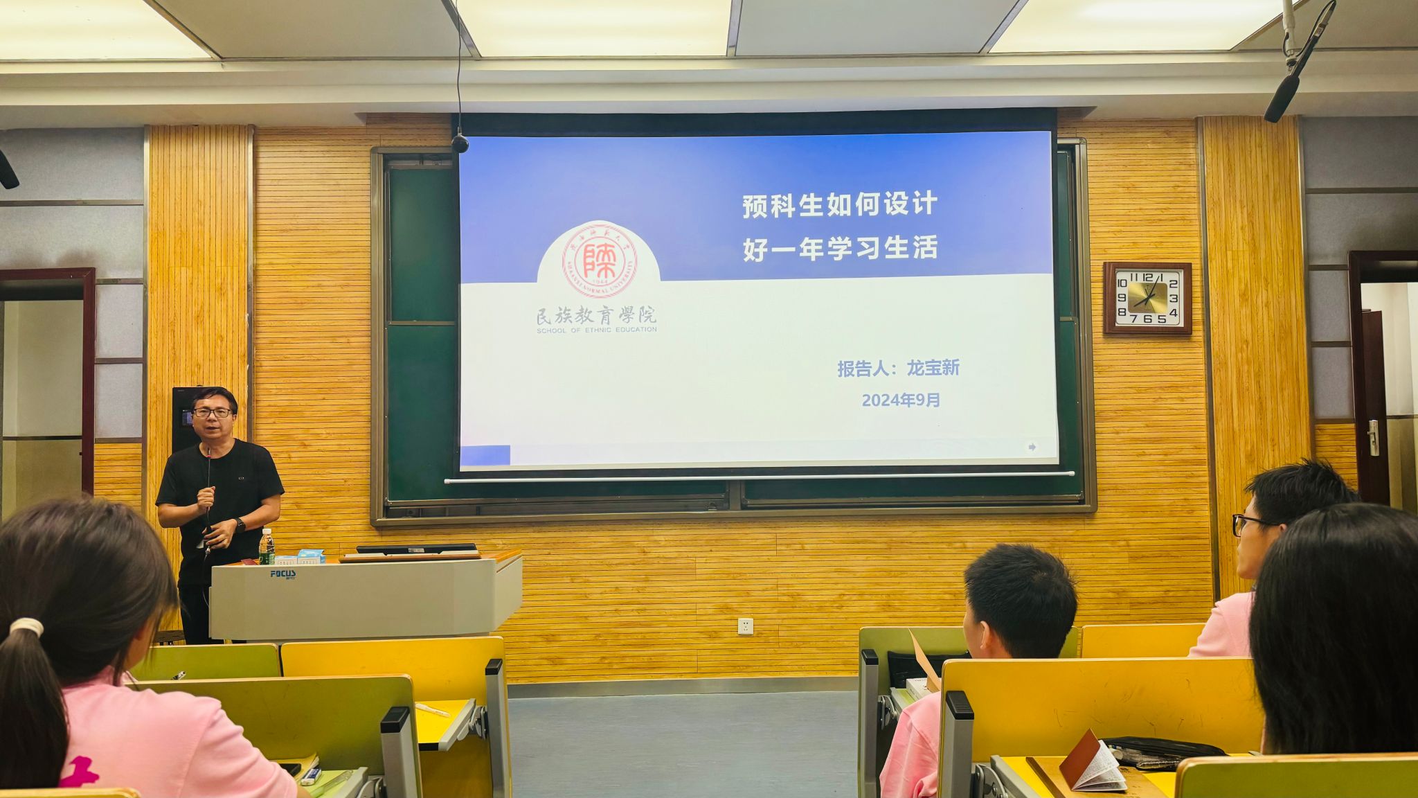龙宝新教授分享的宝贵经验和建议,将助力2024级预科生们在入学之初迅速找准前行的方向,明晰自身的目标与使命。通过此次讲座,希望新生们更加深刻地理解预科学习的重要意义,以积极饱满的热情投入到课程学习之中,为未来大学专业的深入学习奠定了坚实的基础。在这个关键时期,每一位学子都将有机会绽放出属于自己的独特光彩。