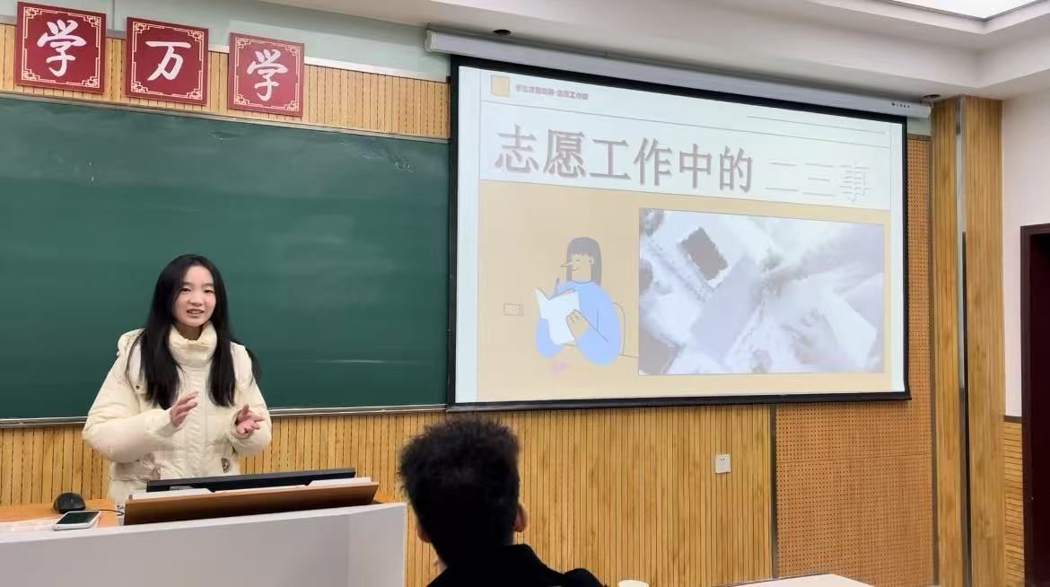 西安外国语大学新闻与传播学院国际新闻与传播专业2022级本科生、校青年志愿者总队副队长兼团支书蔡雨晴化身“行家里手”,为参与培训学员们传授了志愿服务工作中的经验,她以通知与表格的制作方法为切入点,为学员们介绍了志愿活动的流程、会议注意事项以及礼仪规范等内容,号召学员们要积极主动开展学生会工作,为学院的发展贡献自己的力量。