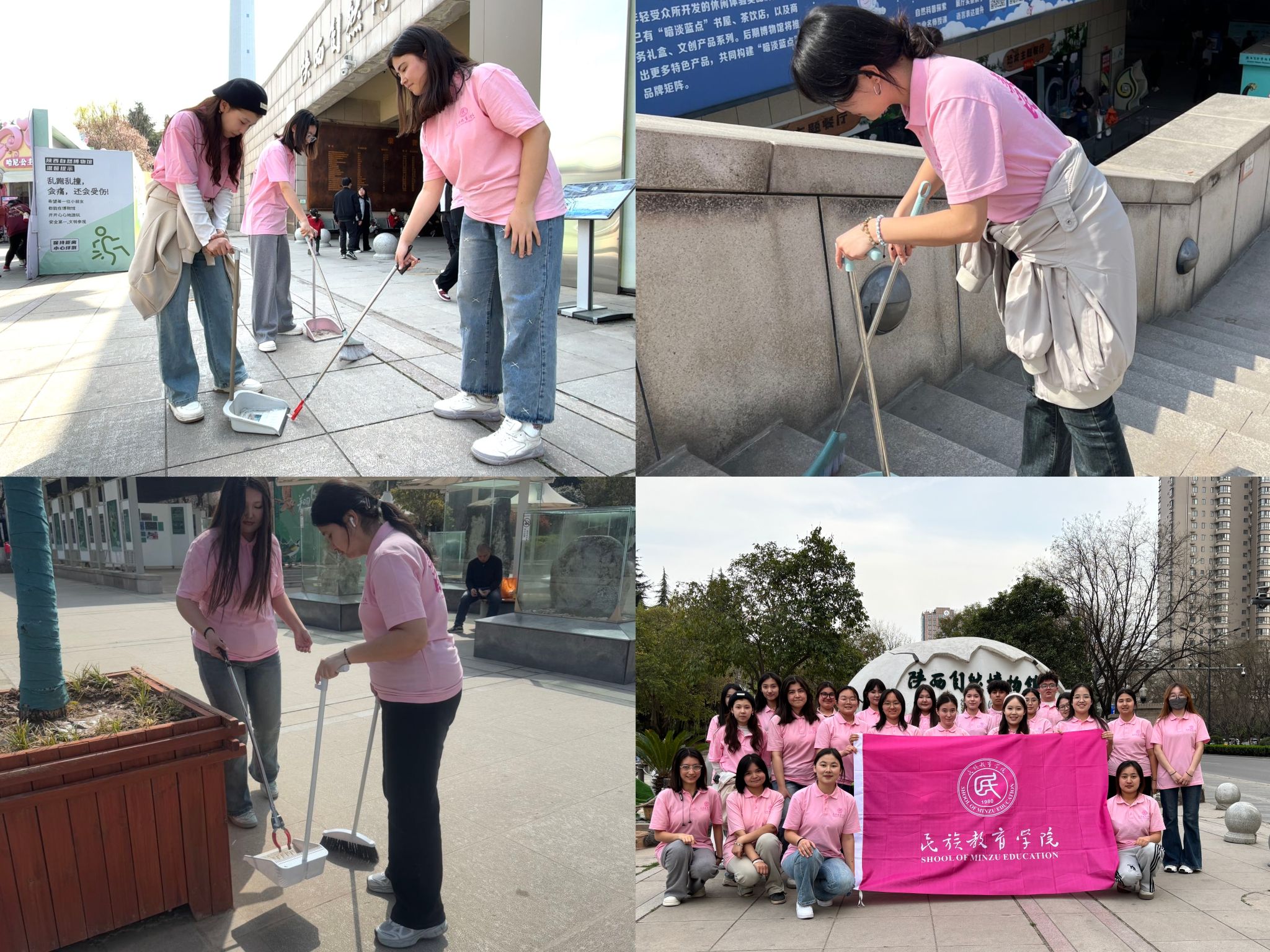 校园里的志愿服务如火如荼,城市中同样活跃着民教学子的身影。继校园行动之后,3月22日,预科三班志愿服务队前往陕西自然博物馆,开展馆外卫生清洁活动。同学们不怕脏、不怕累,认真清扫每一处角落,用自己的双手为美化城市环境贡献力量,在社会服务中展现新时代青年的风采,也让雷锋精神在劳动中熠熠生辉。