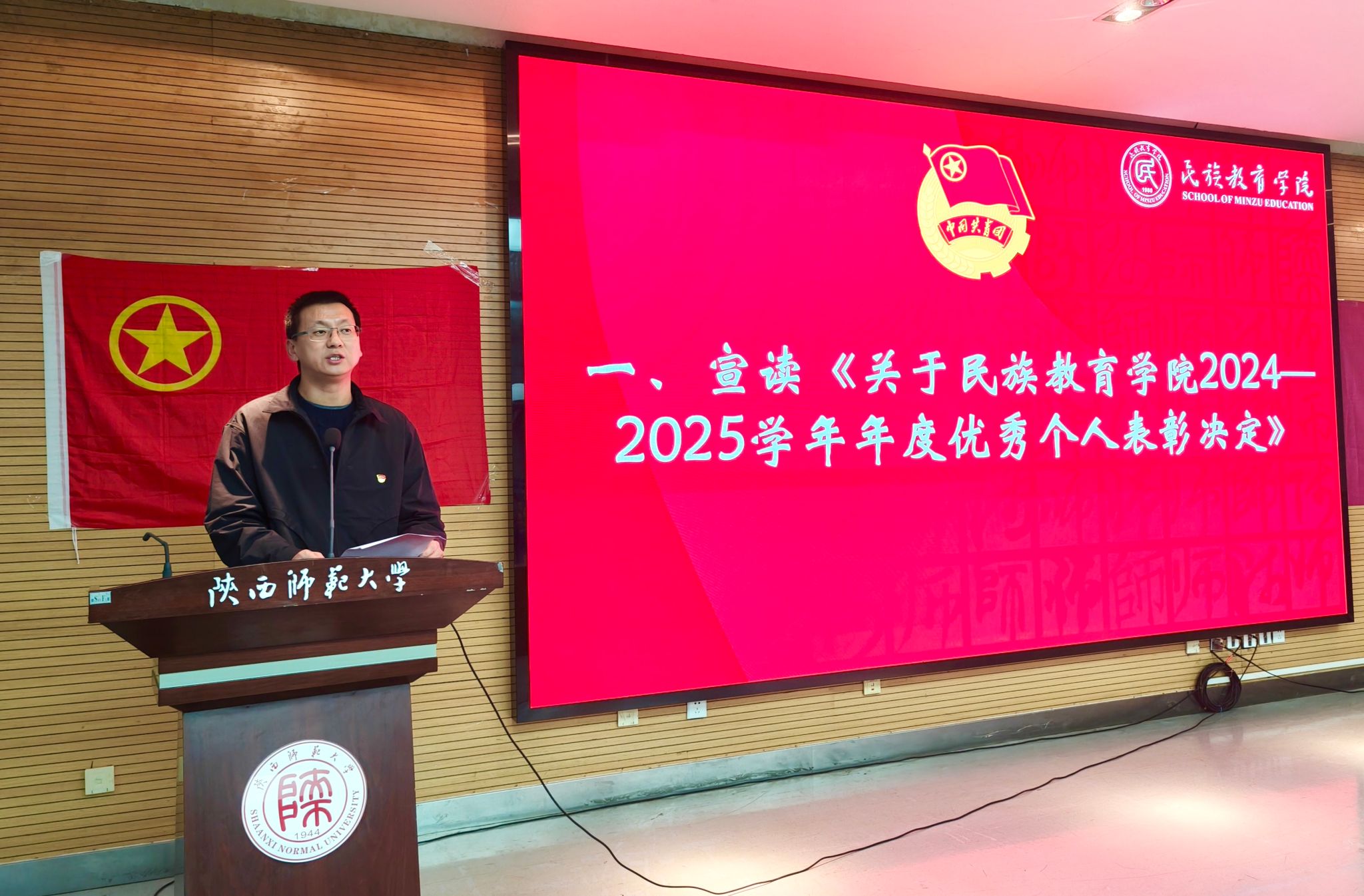 2024-2025学年度学生表彰大会在雁塔校区崇鋈楼学思堂顺利召开。学院党总支书记闫文浩,党总支副书记高冬,专职辅导员米尔微提·赛尔克汗,学生兼职团委副书记、兼职辅导员刘江珊及全体学生参加了此次大会,会议由2025级预科生巴尔瑞国、肖亚琪主持。