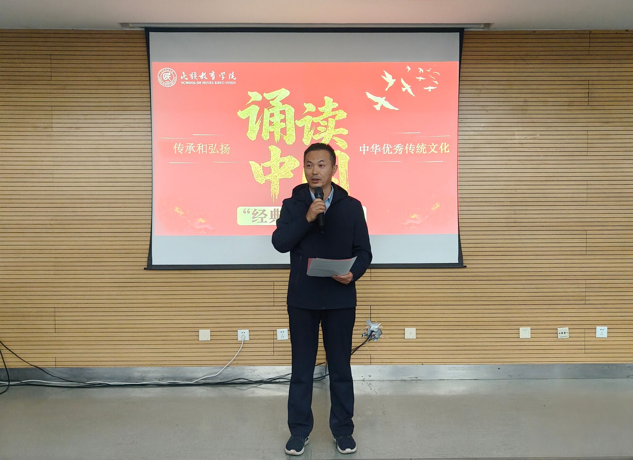 最后,闫文浩讲话。他充分肯定了本次大赛的成功举办,并向为此默默奉献、付出努力的所有师生表达了诚挚的谢意。他表示,一场精心筹备的赛事,其价值不仅在于舞台上的精彩瞬间,更在于其规范严谨的组织过程对同学们综合素质的无声熏陶。此外,他进一步阐释了活动的深层内涵。当经典篇章通过青年一代的理解与表达,转化为鲜活、可感的精神力量时,文化传承便真正落到了实处。