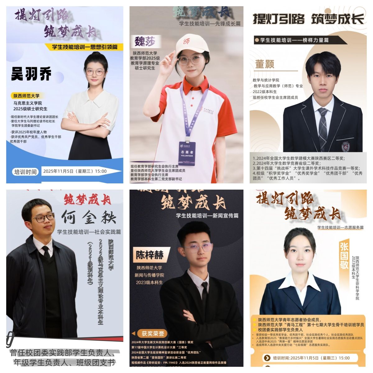于2025年11月成功举办2025-2026学年度学生骨干系列培训。本次培训以“提灯引路,筑梦成长”为主题,邀请校内六位优秀学生骨干,围绕思想引领、志愿服务、社会实践、新闻宣传等多个实务模块展开深入讲解与交流
